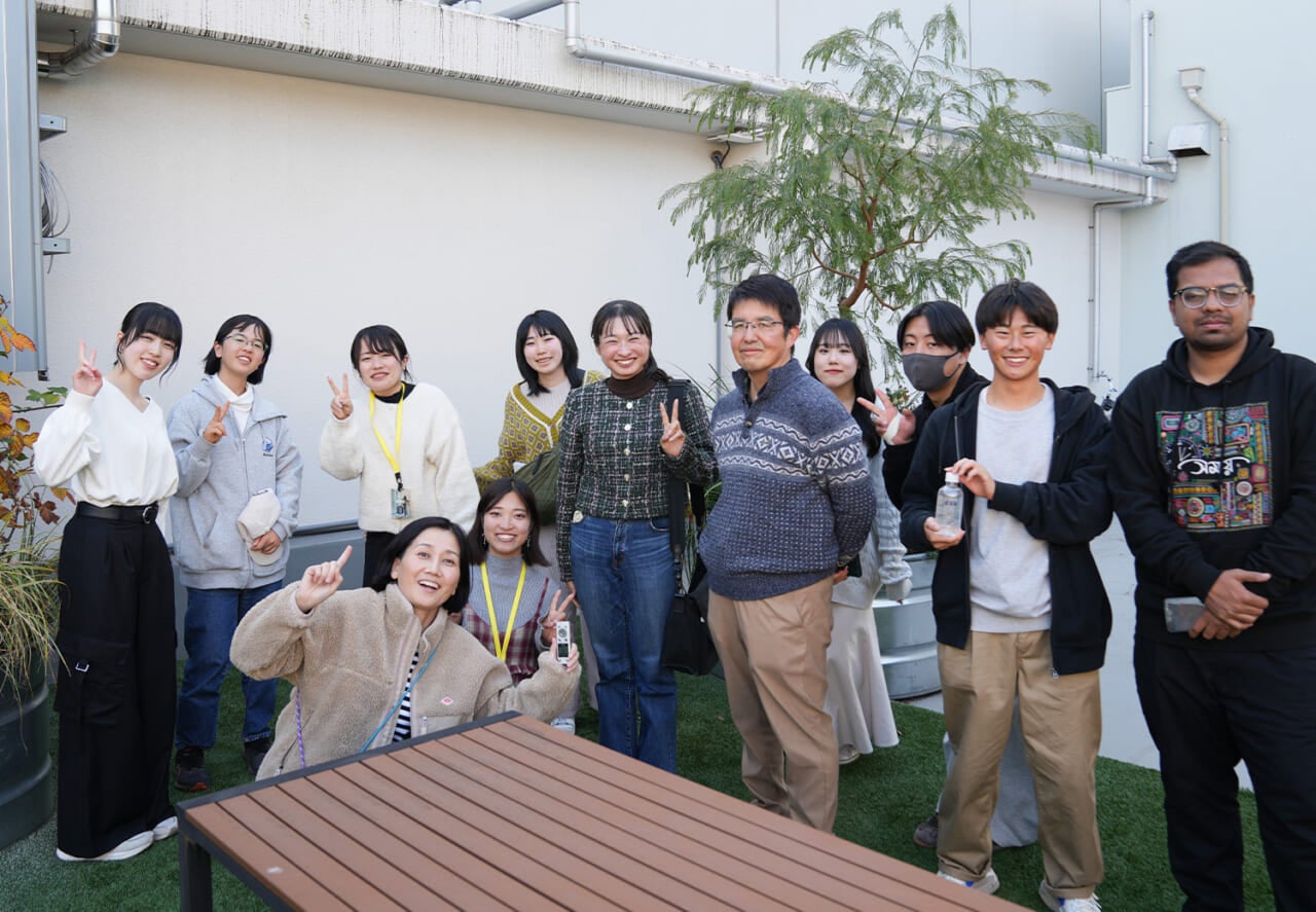 △大勢に囲まれた、ほぼ日の屋上にある雑草プランター