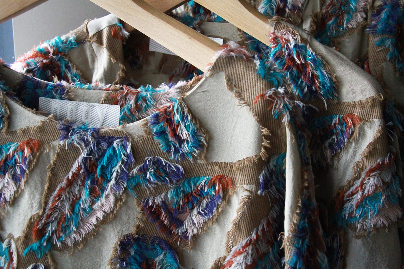 たとえばこの立体感のある鳥の羽根柄の服は、