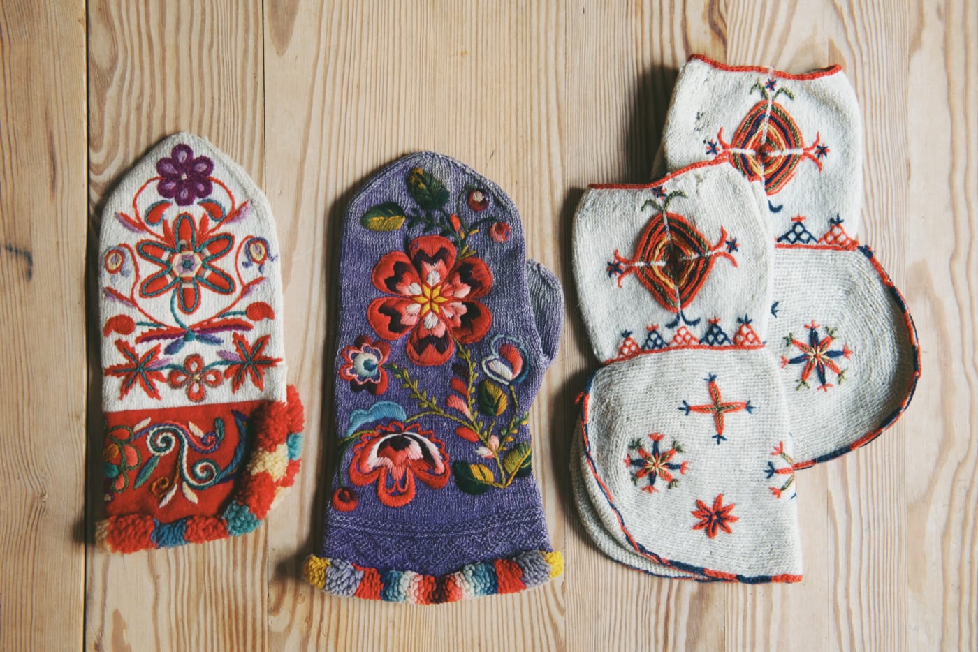 ミトンなどを羊毛を紡いで編んだそう。