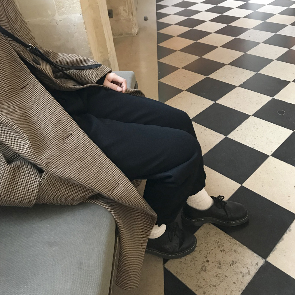 足元は黒のドクターマーチンと