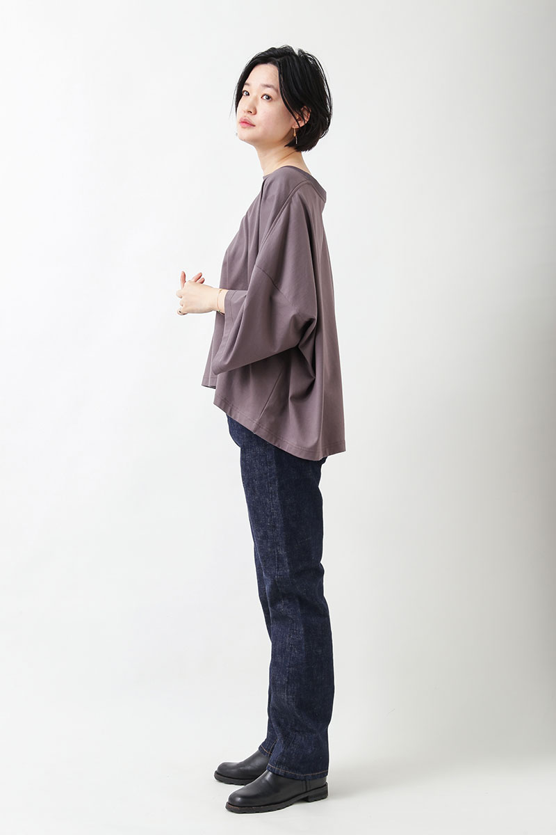 オーバーサイズで柔らかい素材のシャツを合わせ、