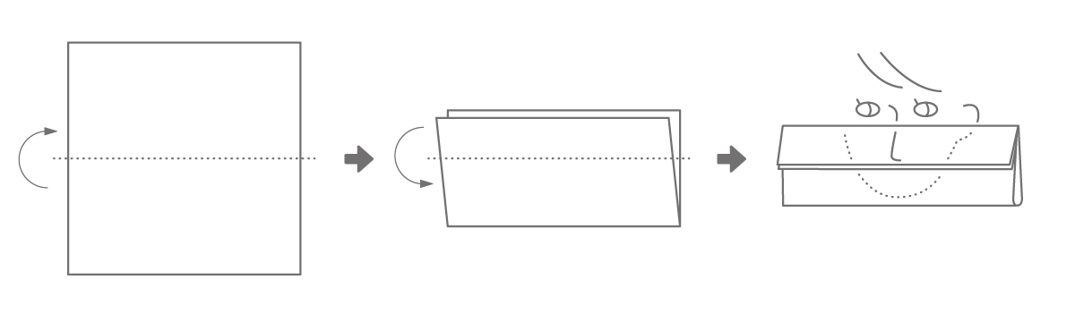 ハンカチを半分に折り、