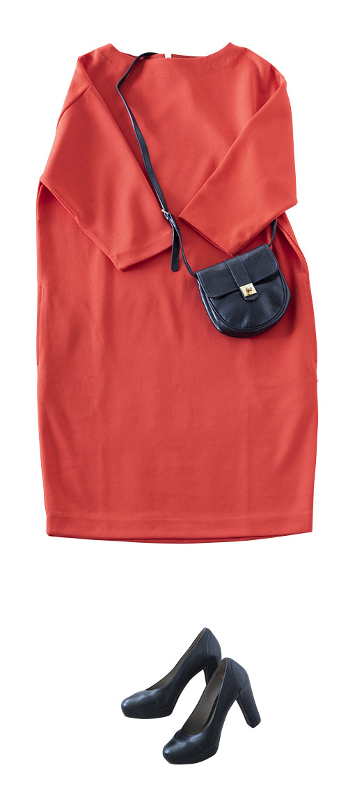 黒のヒールの靴と小さなバッグを斜めがけすれば、