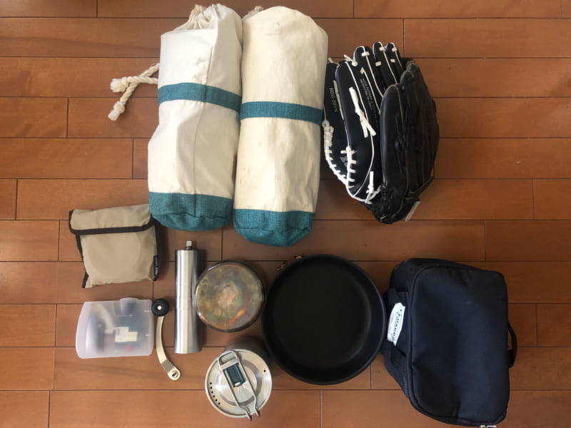 おもにキャンプやピクニックの道具をいれています。