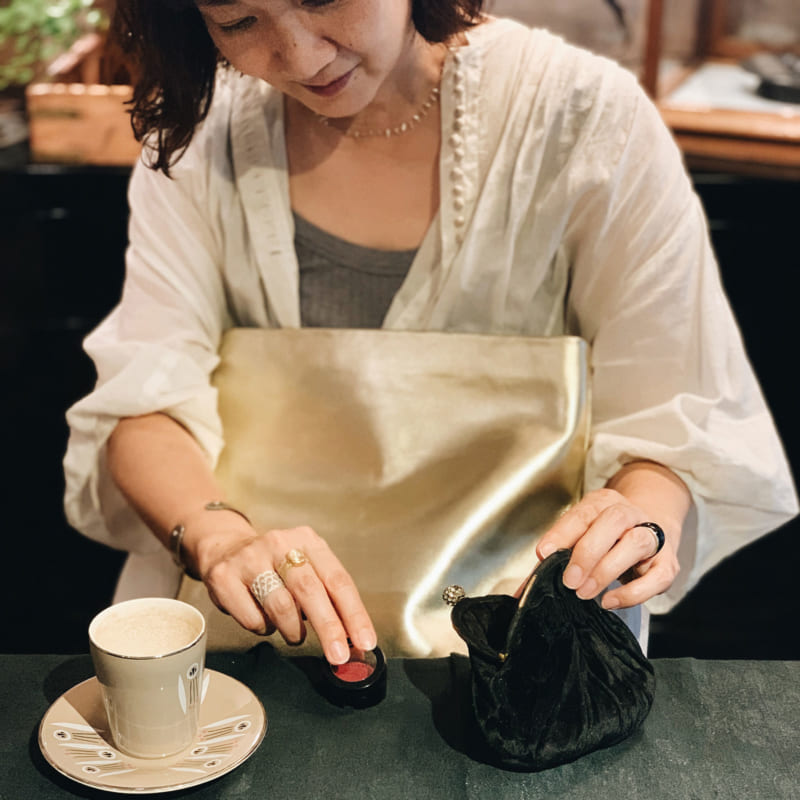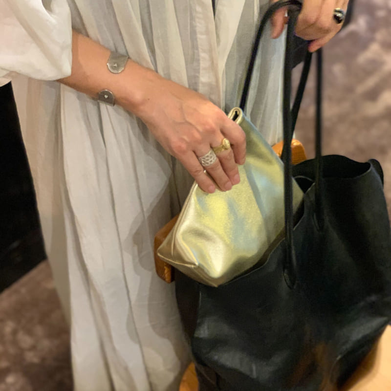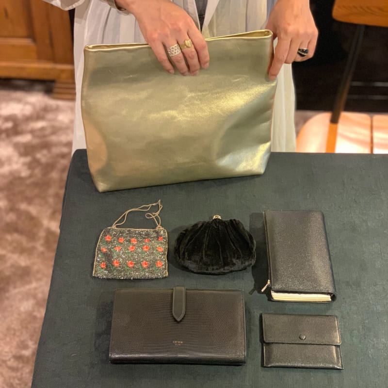 お店に立ち寄る時などは小さなバッグだけを持ちます。