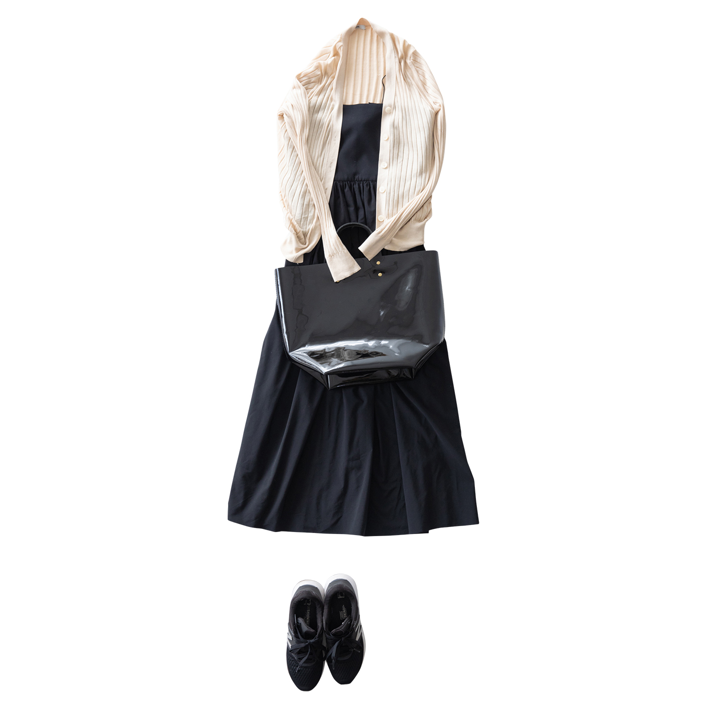靴はバッグに合わせて黒を。