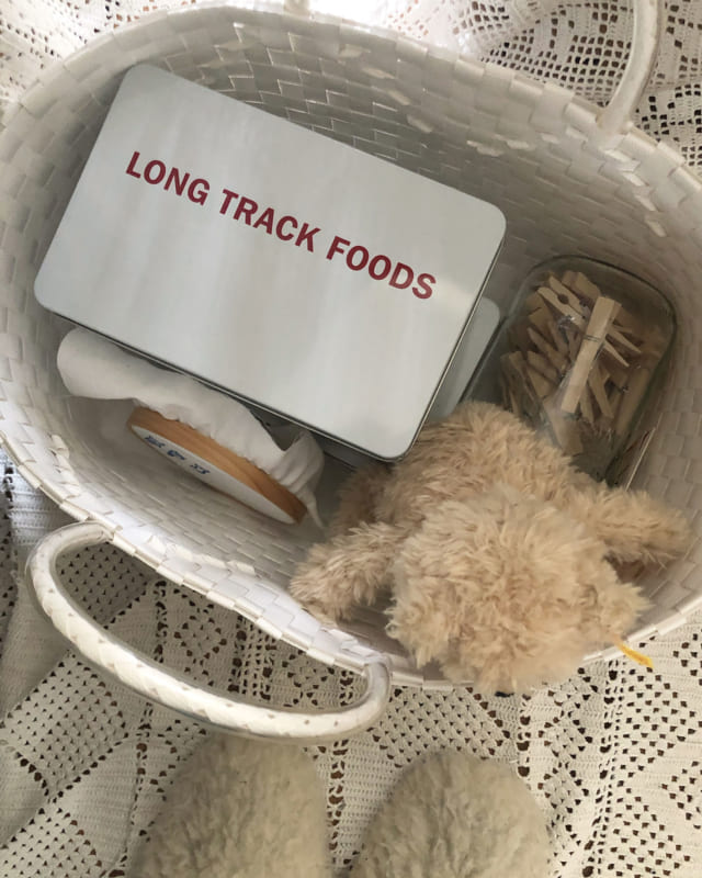 ▲「棚の下段に入れている裁縫道具を入れたかごです。その日の気分で裁縫道具をかごごと持ち運べるので、とても便利です」