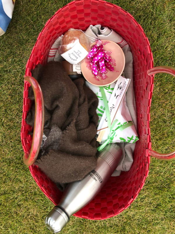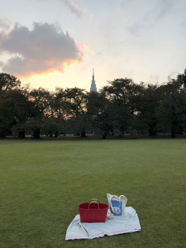 ▲ピクニックには、敷物やのみもの、たべものをどっさり!