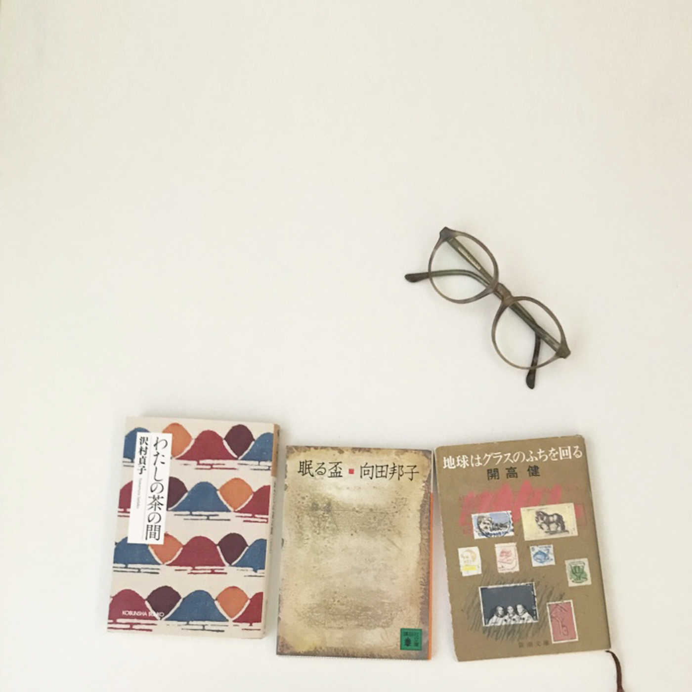 小さな文庫の文字を読むとき用の眼鏡もわすれずに。