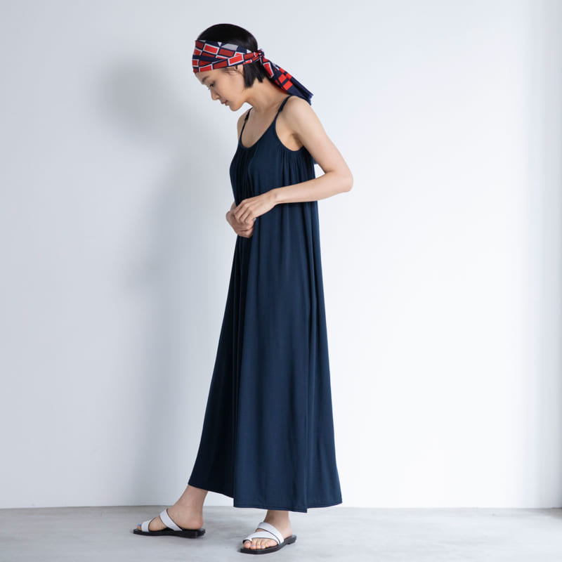 このネイビーの発色も、テンセル素材ならではなんですよ。
