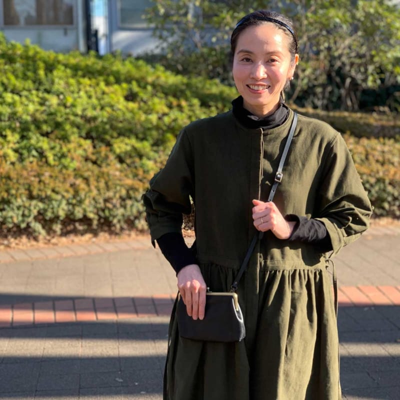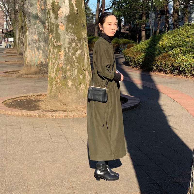 華奢な体型にボリュームのあるボトムスがよくお似合い。