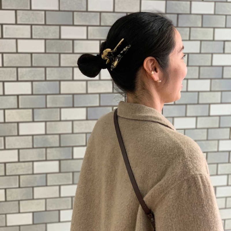髪もちゃんとアイボリーのヘアクリップでまとめて。