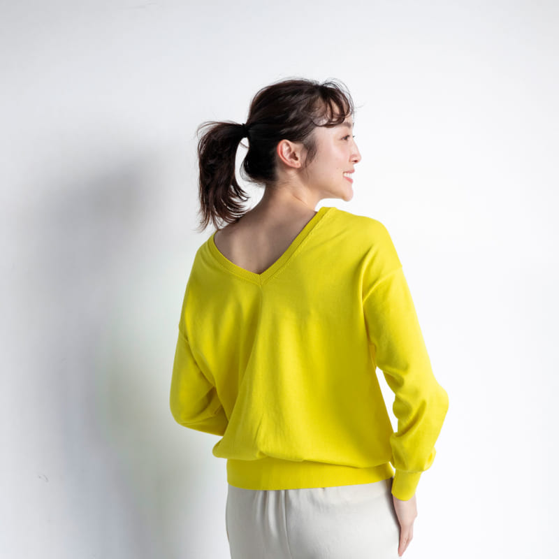 様になるのは、襟ぐりの開き具合が絶妙なのと、