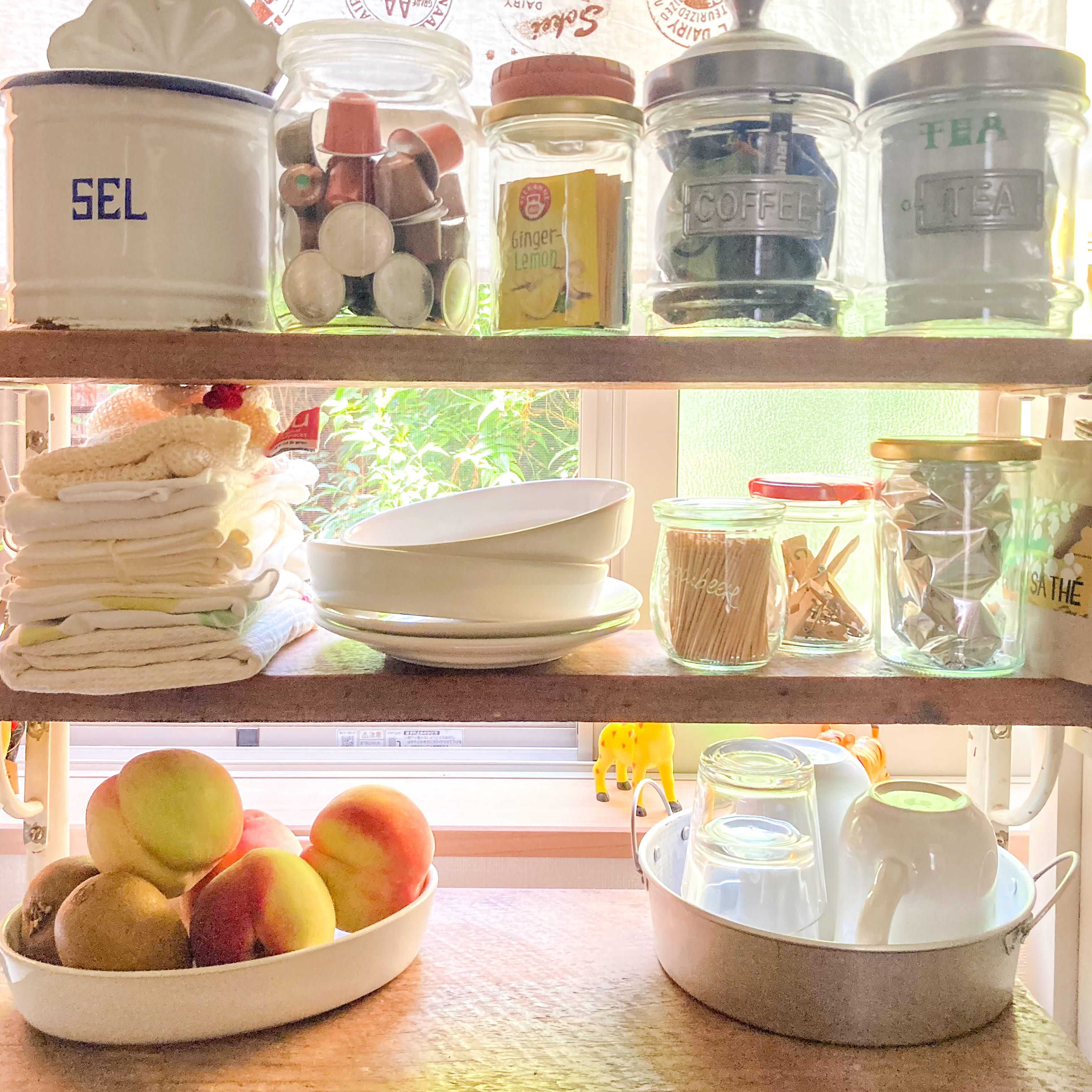 使用頻度の高いものを、見える棚に置いています。