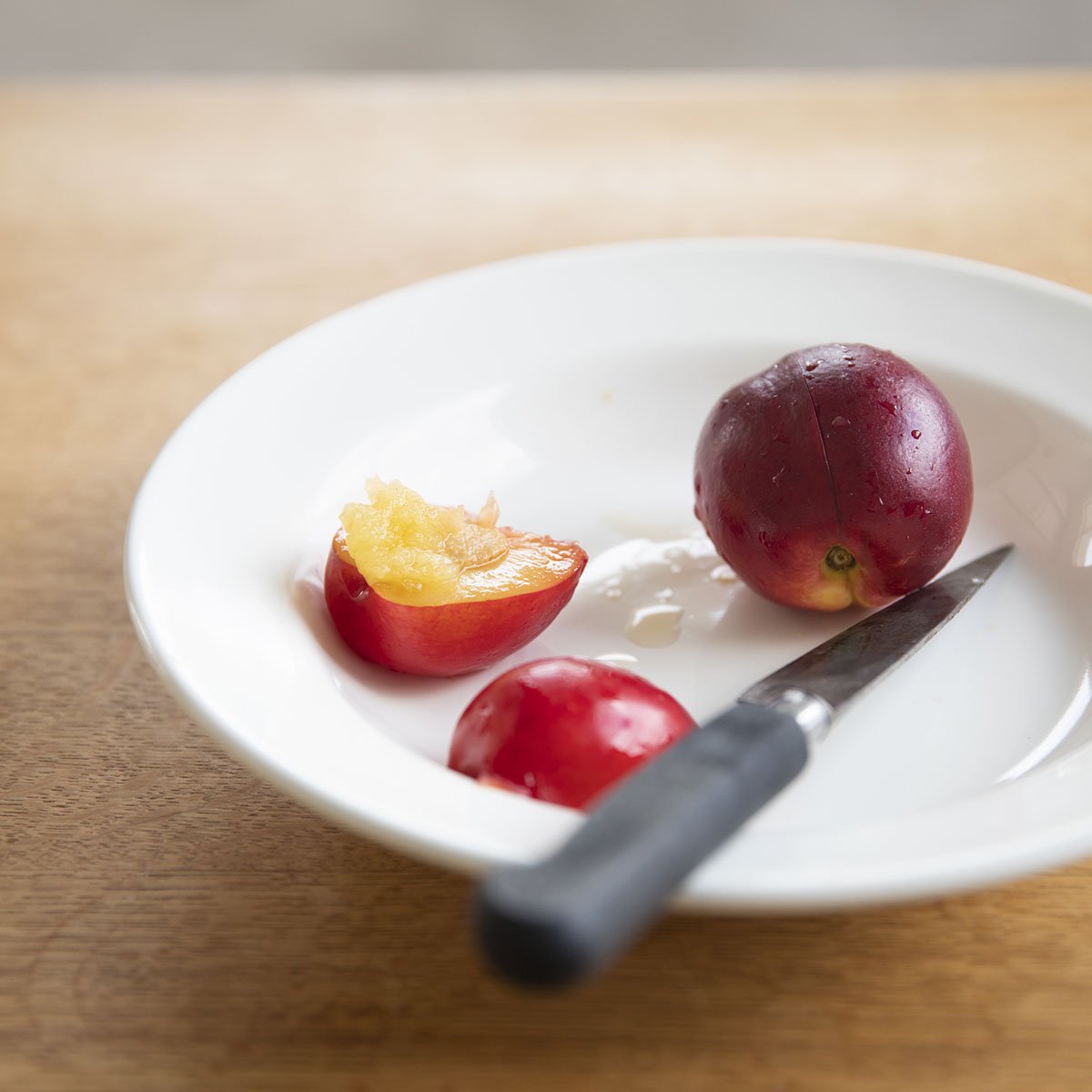 - わたしは大きいお皿大きなプリンをドンと載せて、