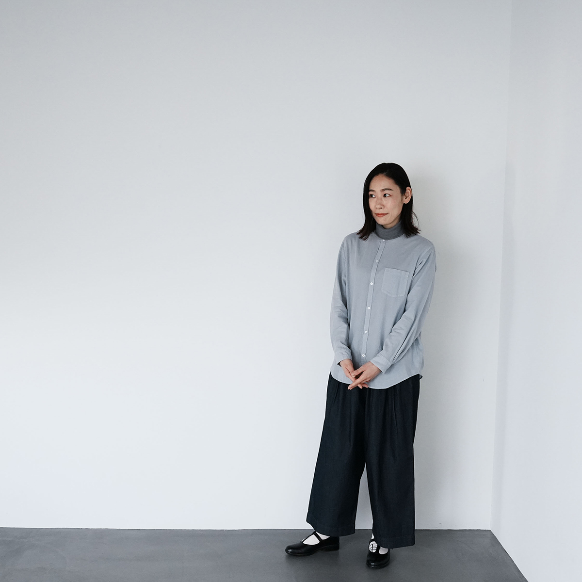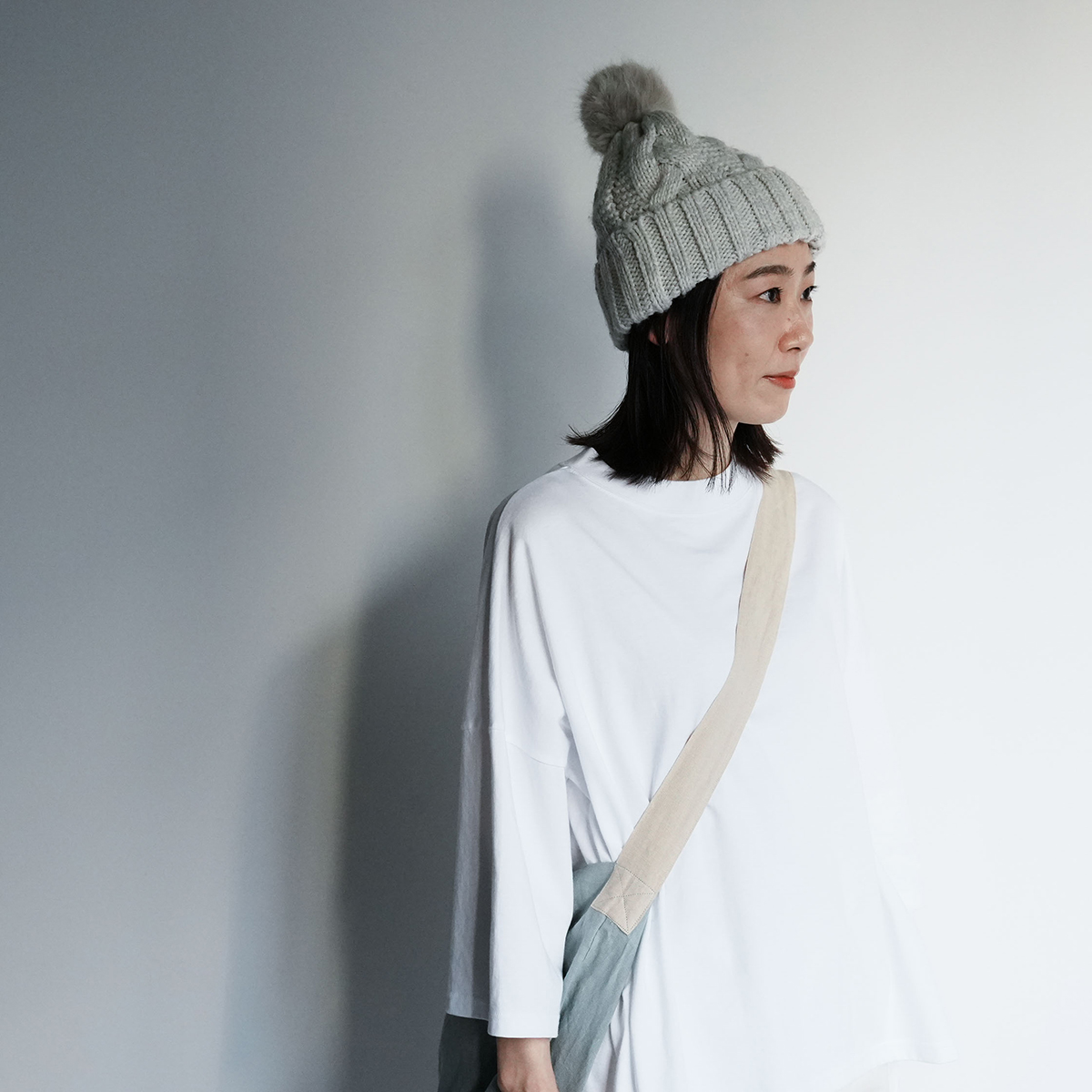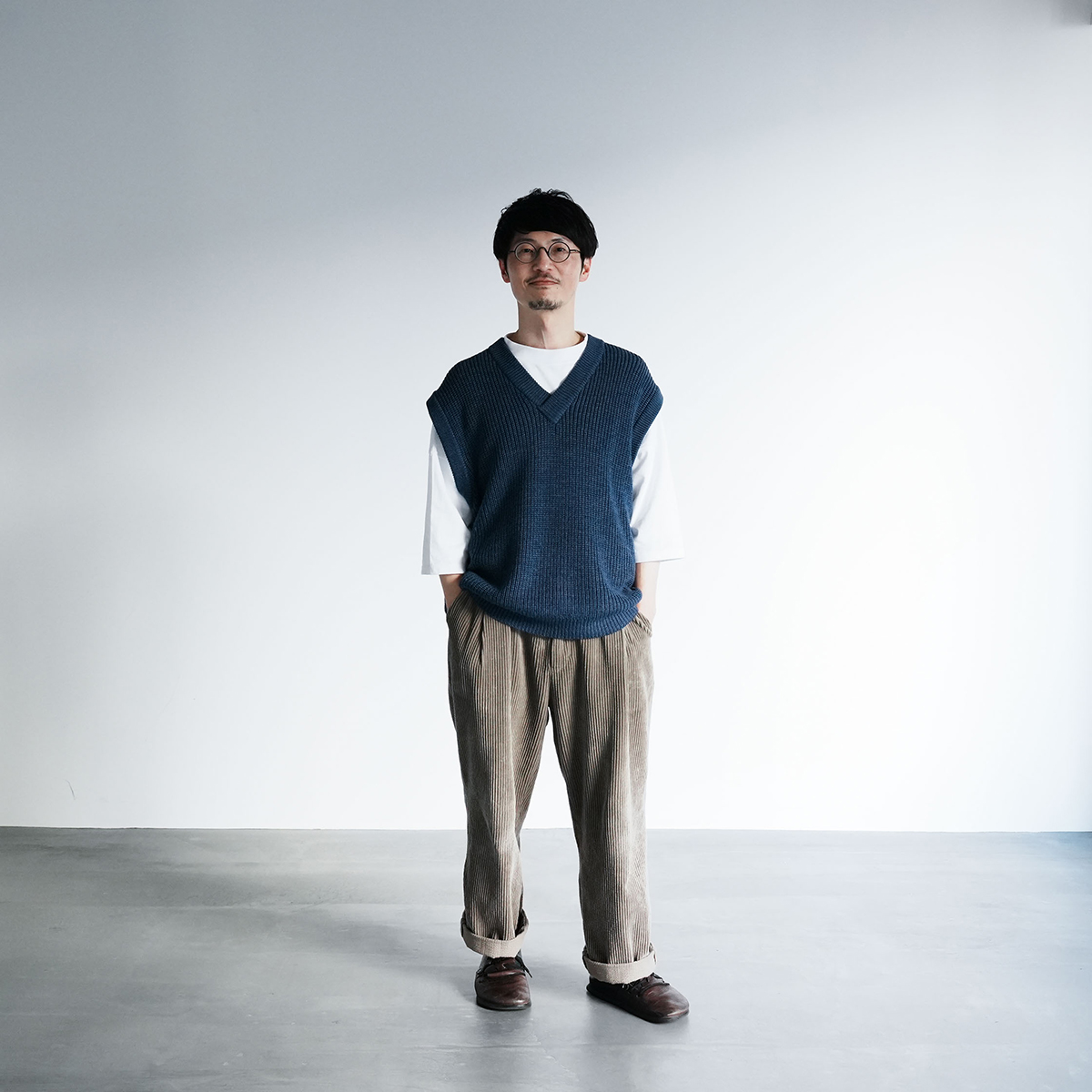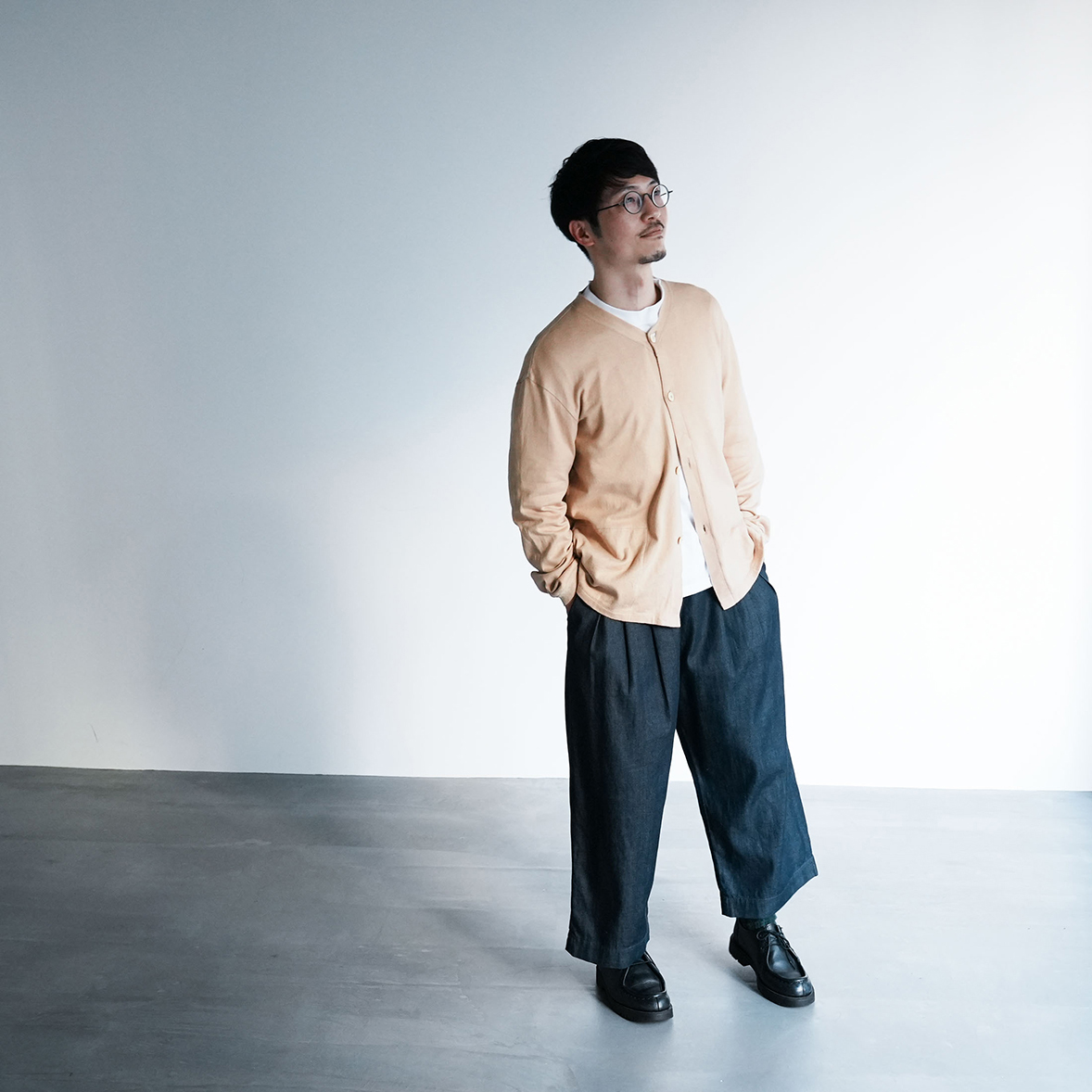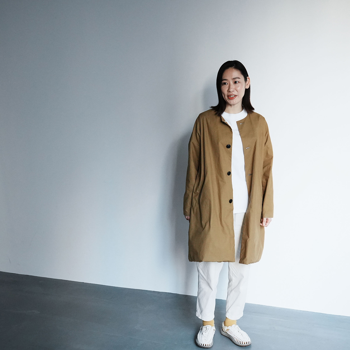 Tシャツの上に軽めのコートを羽織るとこんな風。