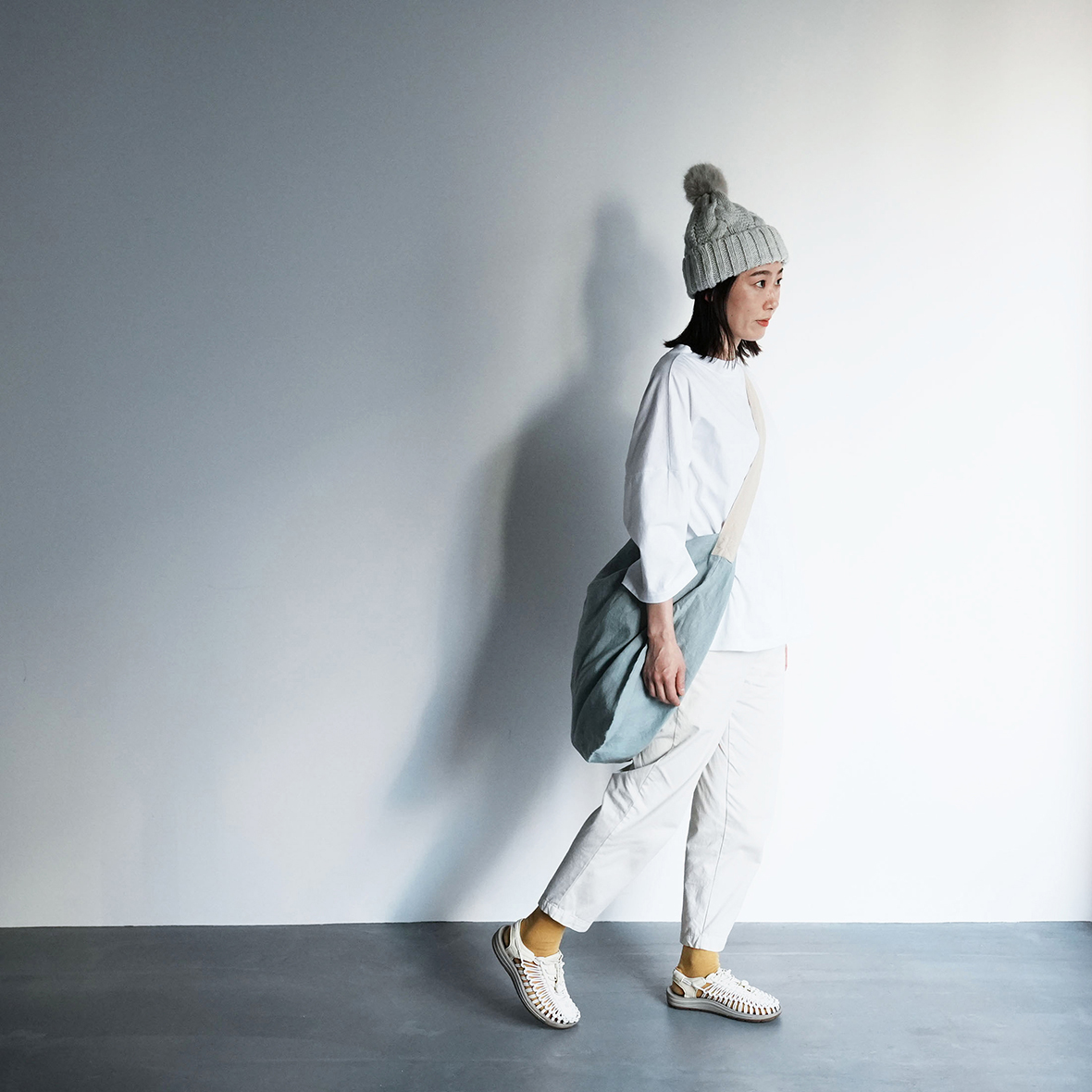 少しゆとりのあるパンツに歩きやすそうな靴、