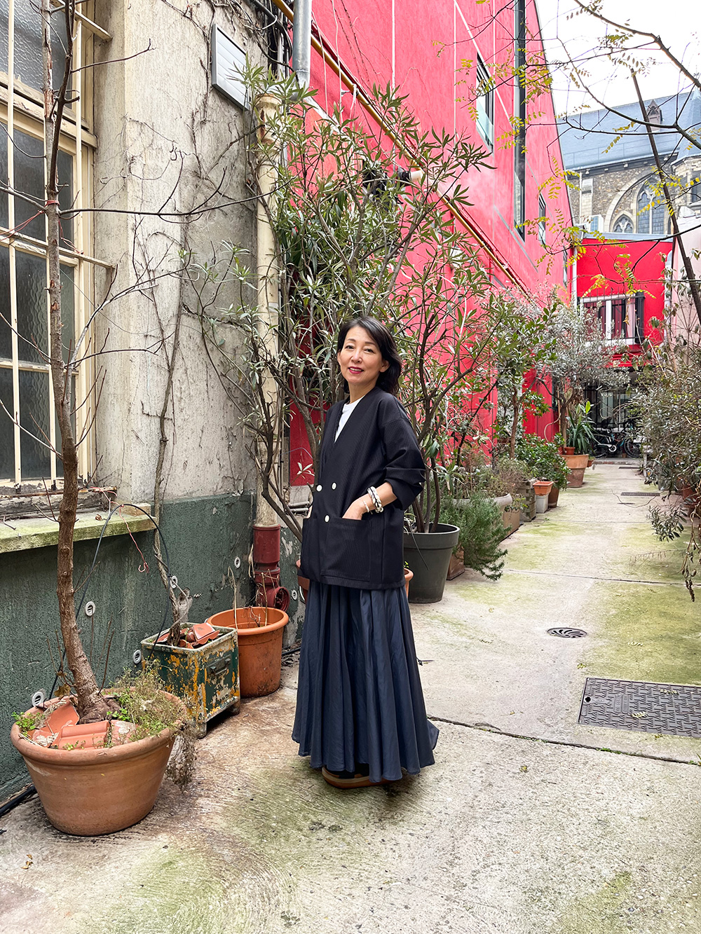 t.yamai parisのジャケット姿のひろみさん。