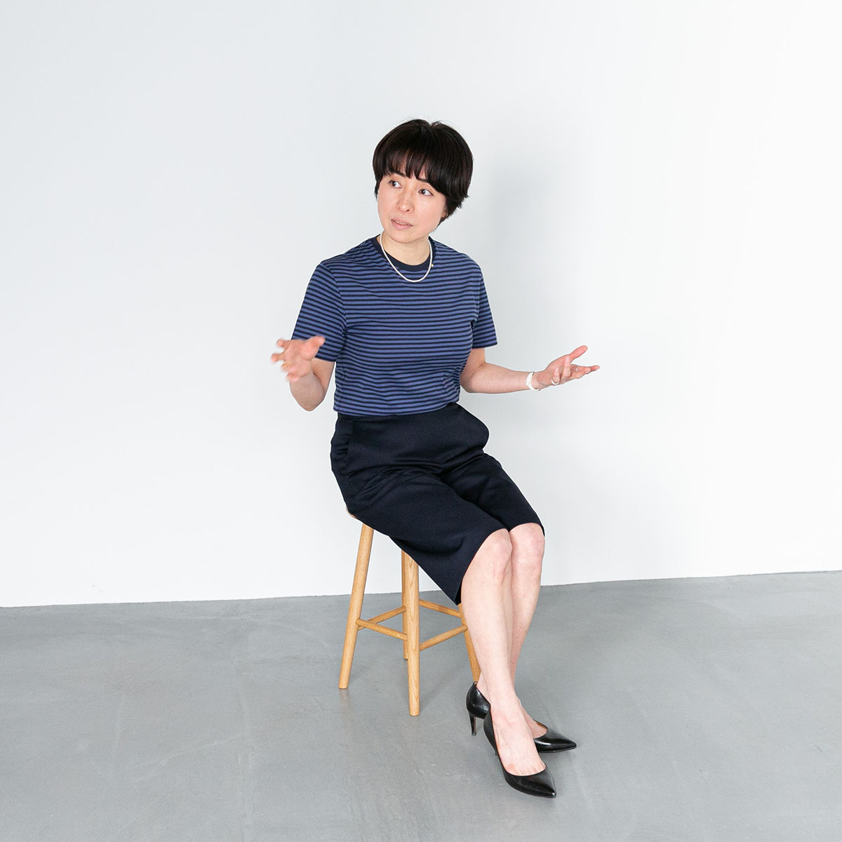 - ネイビーのキュロットに合わせたのは、