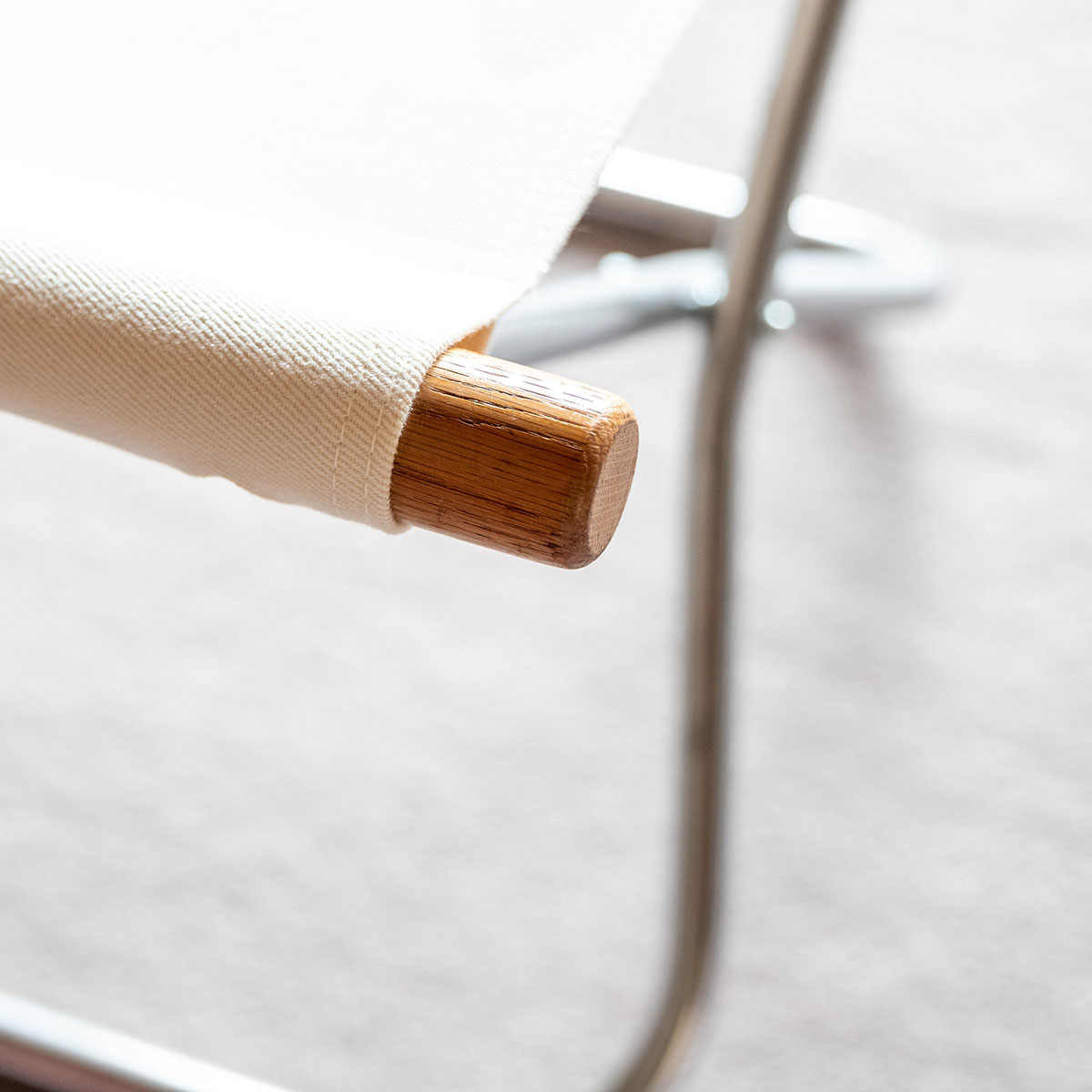 スツールに生成り色のシートクッションを合わせたのは、