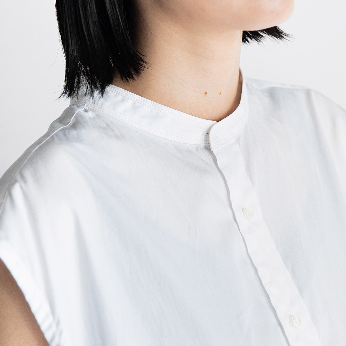 スタンドカラーの襟回りはたっぷりめ。