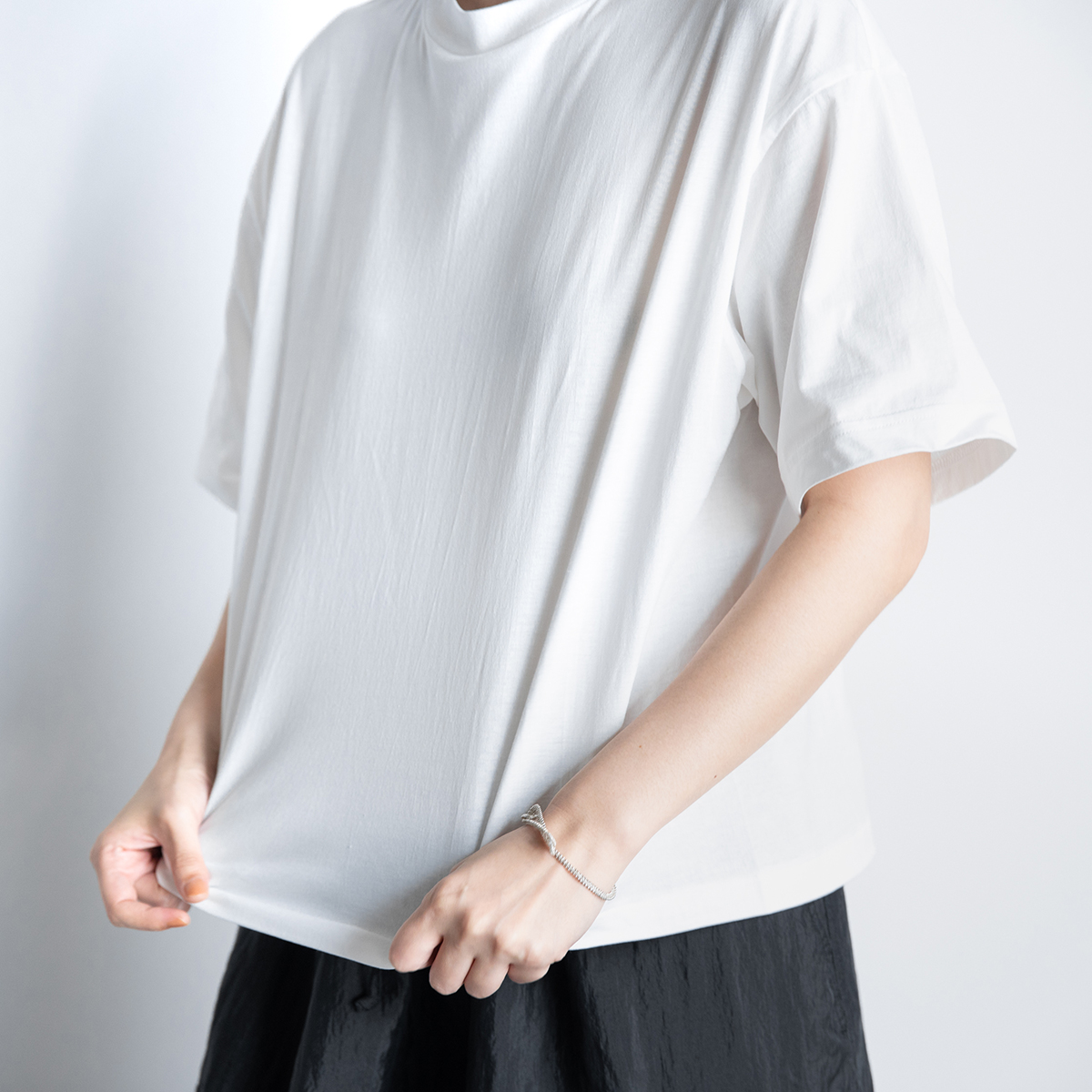 「Tシャツを着る時、必ずきらっとした質感を足す」