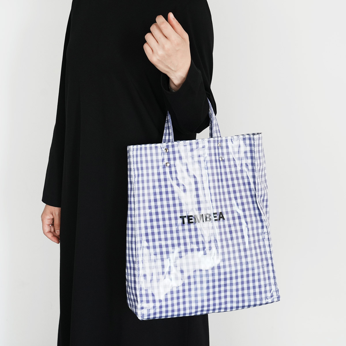 PAPER TOTE MEDIUM(GINGHAM PURPLE)/TEMBEA