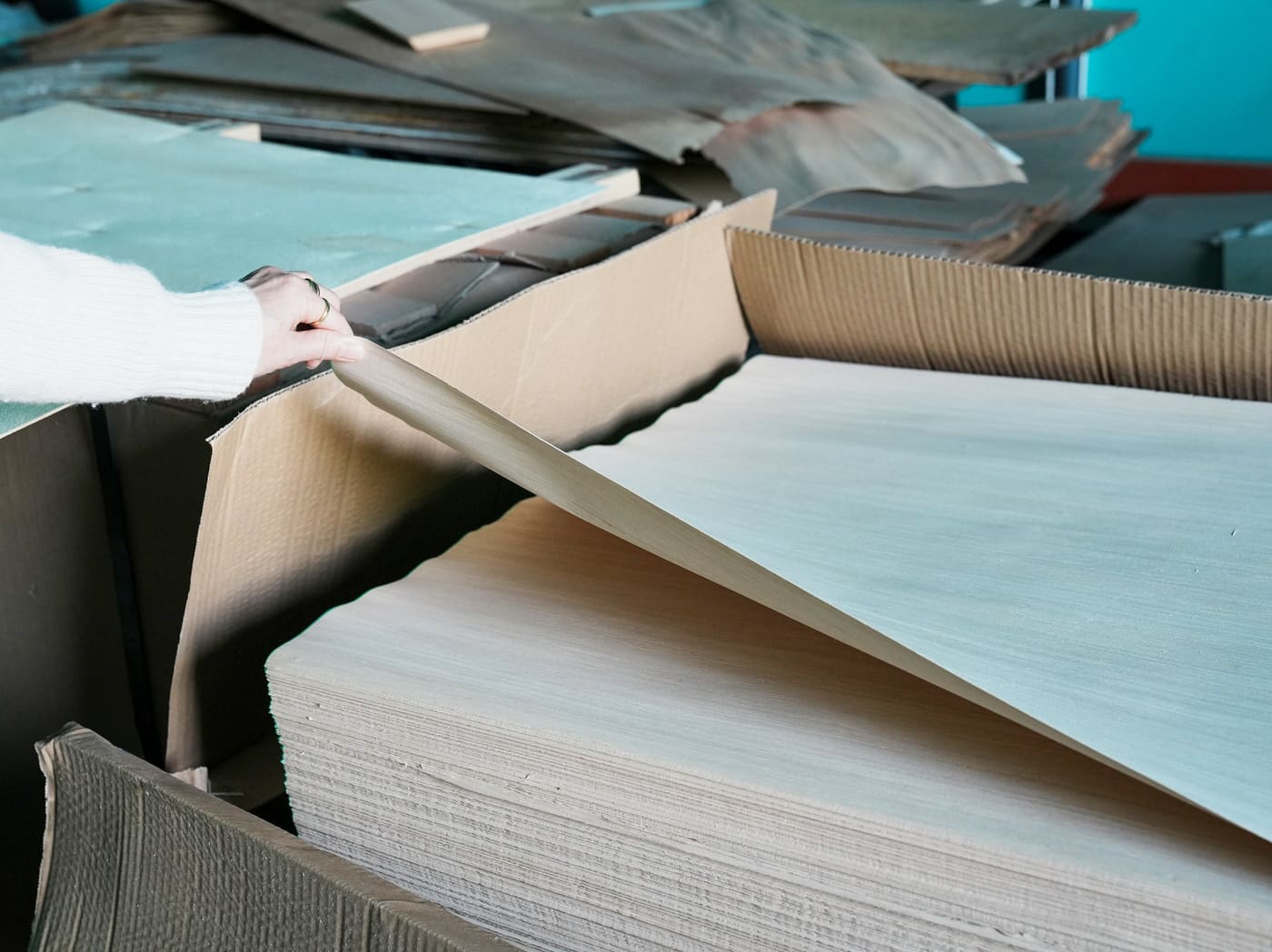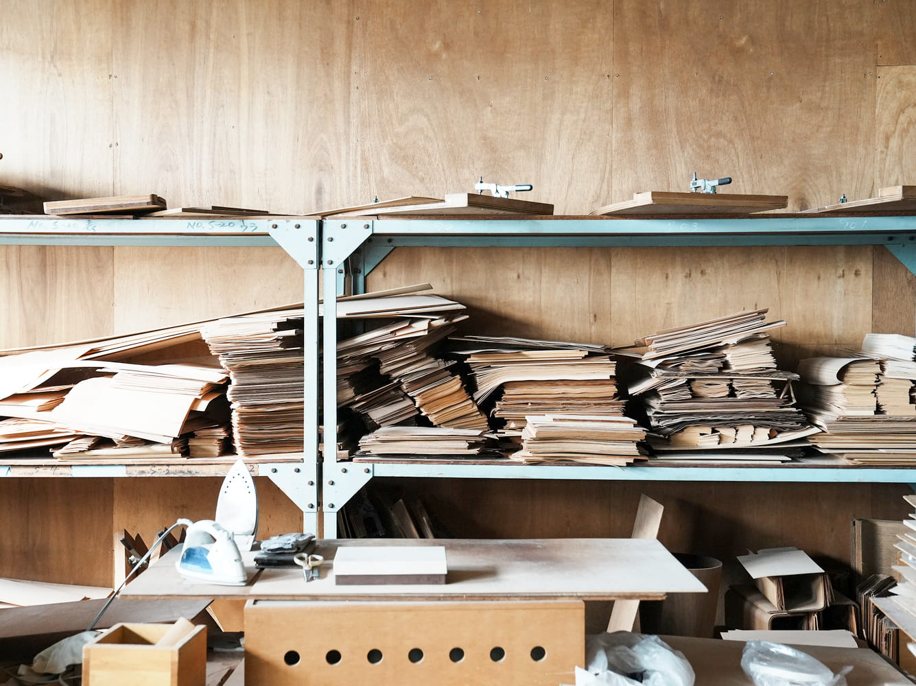 倉庫で見ていただいた薄い木材を