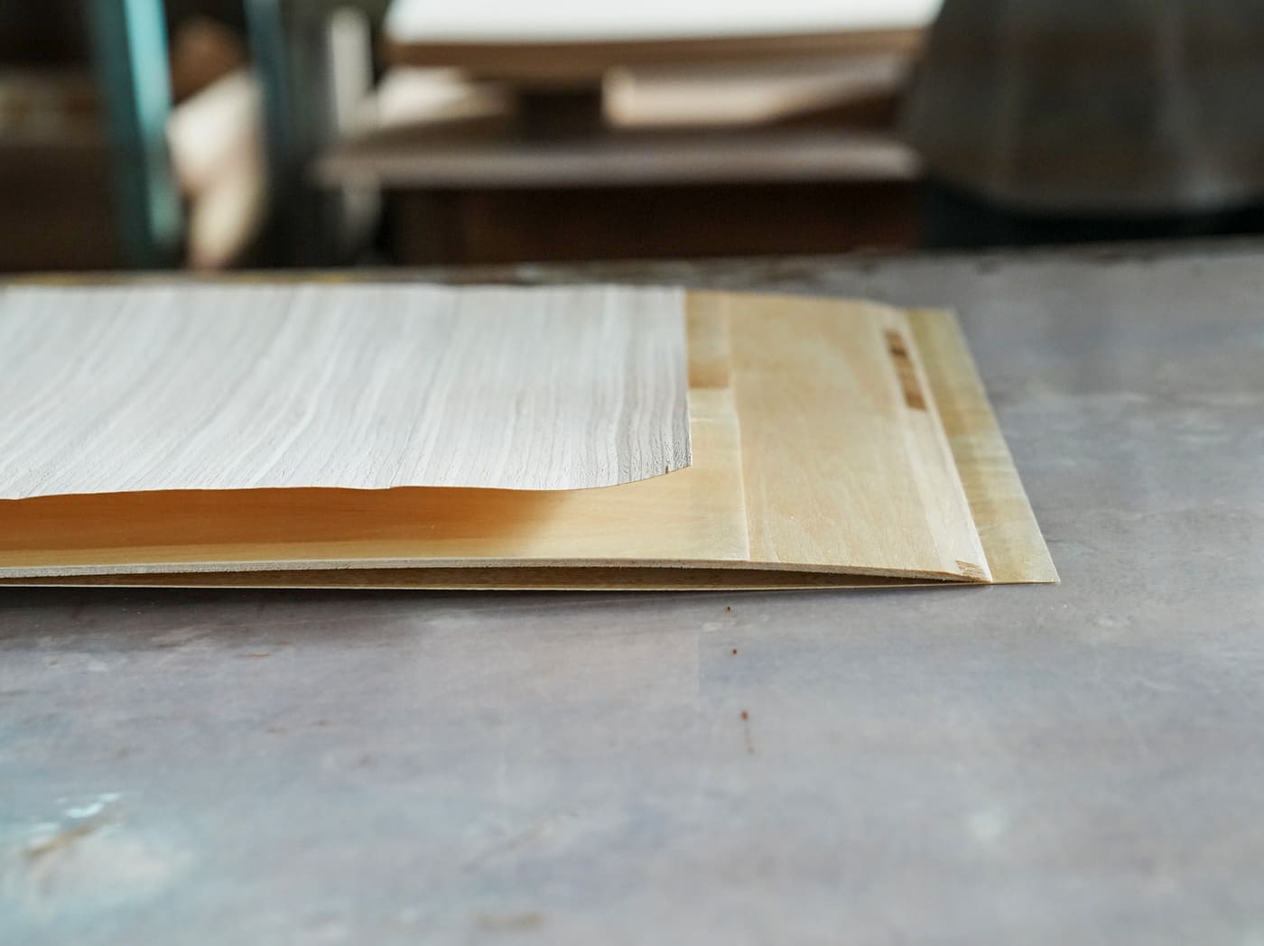 外側に突板を合わせて糊付けをします。