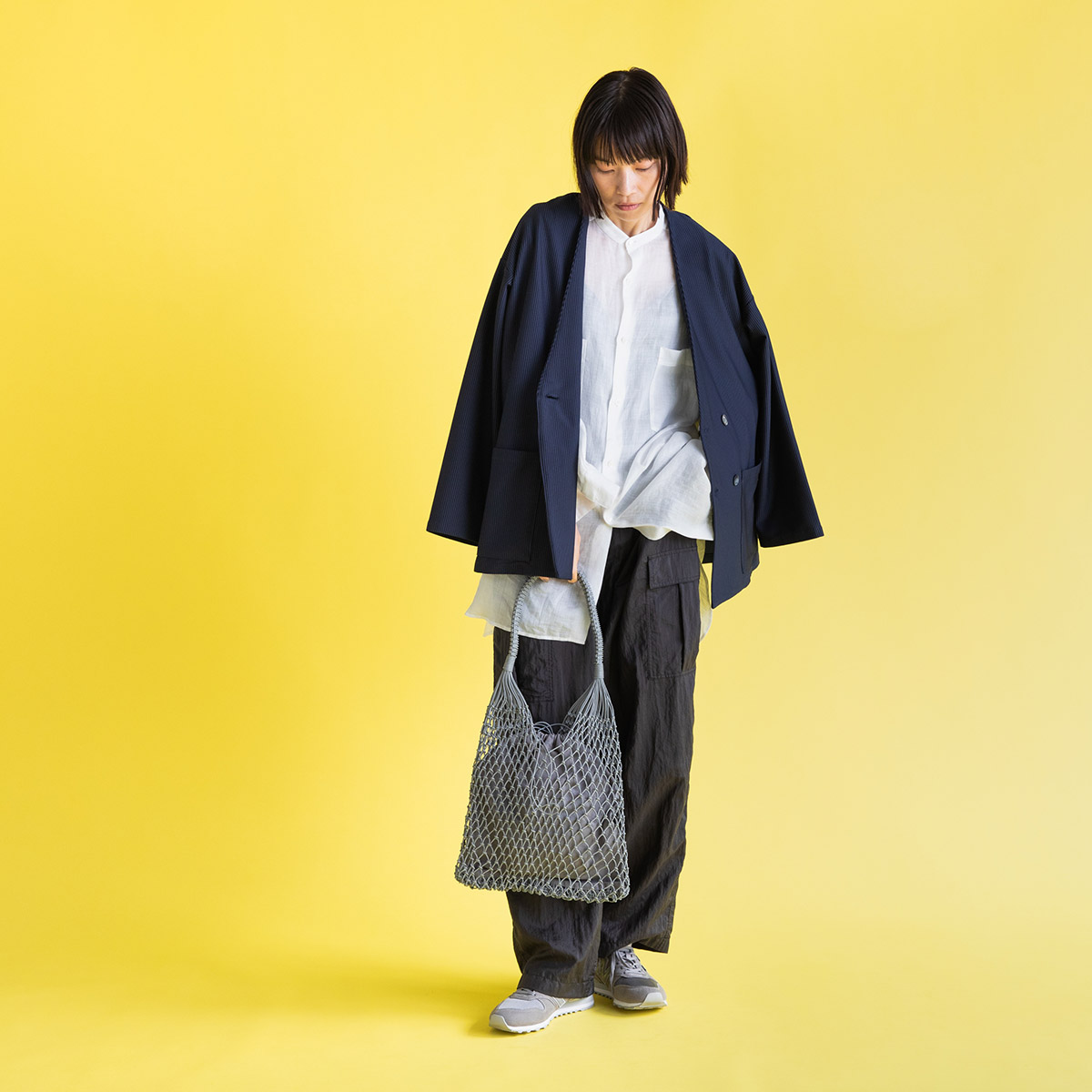 かごバッグだとナチュラルに寄り過ぎてしまう。
