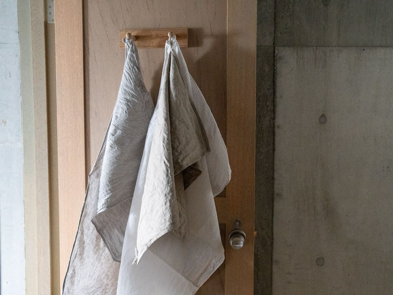シンプルなデザインのキッチンリネンやベッドリネン、