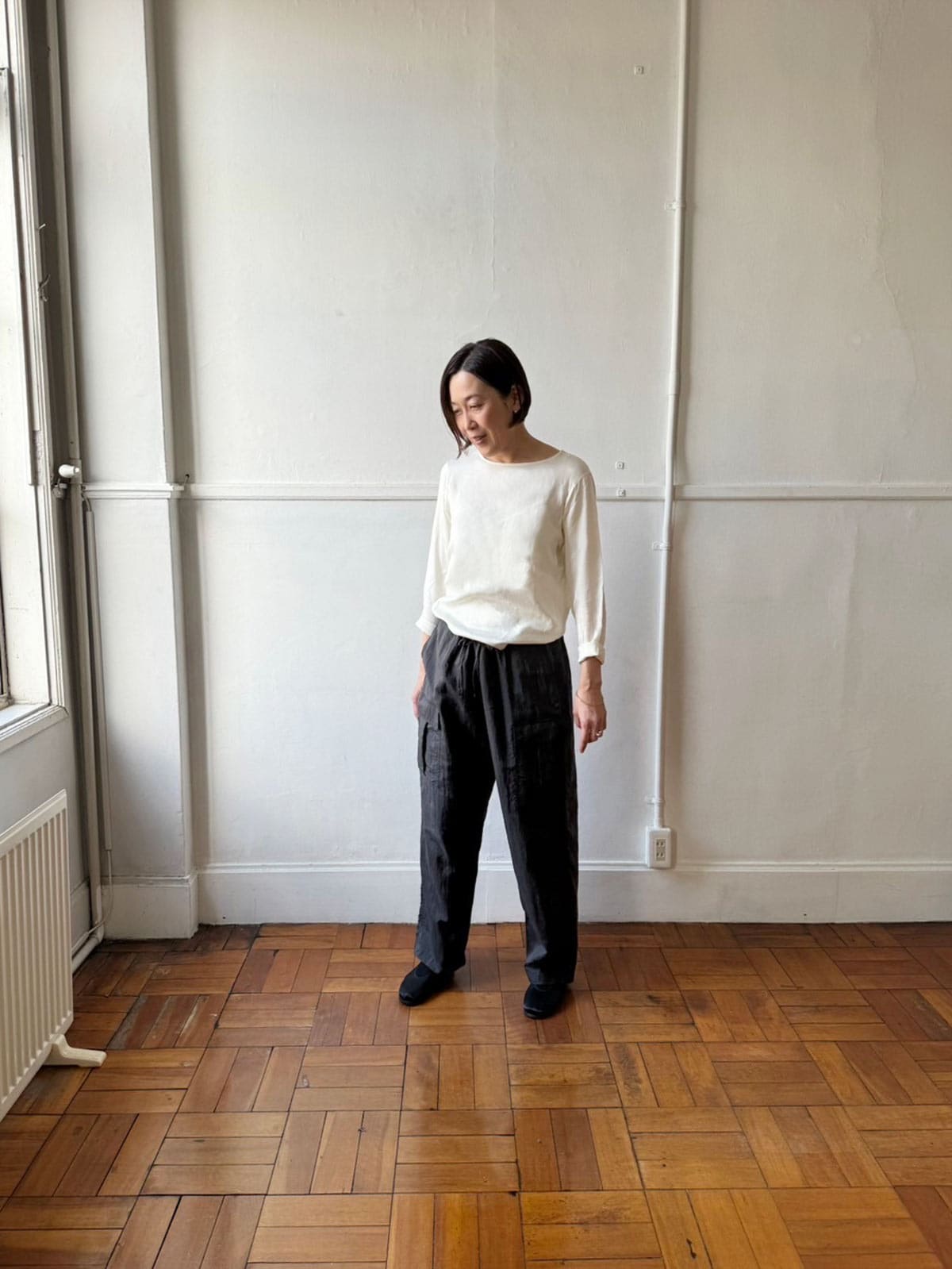 一瞬、スカートと見まごうギャザーたっぷりのパンツ、