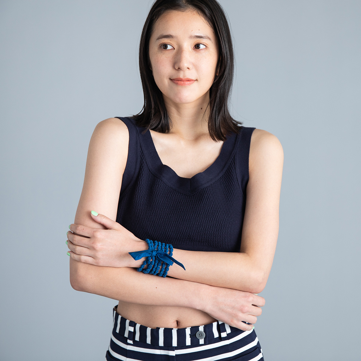 ネイビーのネックレスに合わせたのは、
