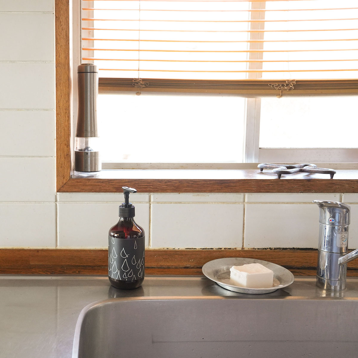 広いキッチンの窓辺に、weeksdaysのハンドソープ。