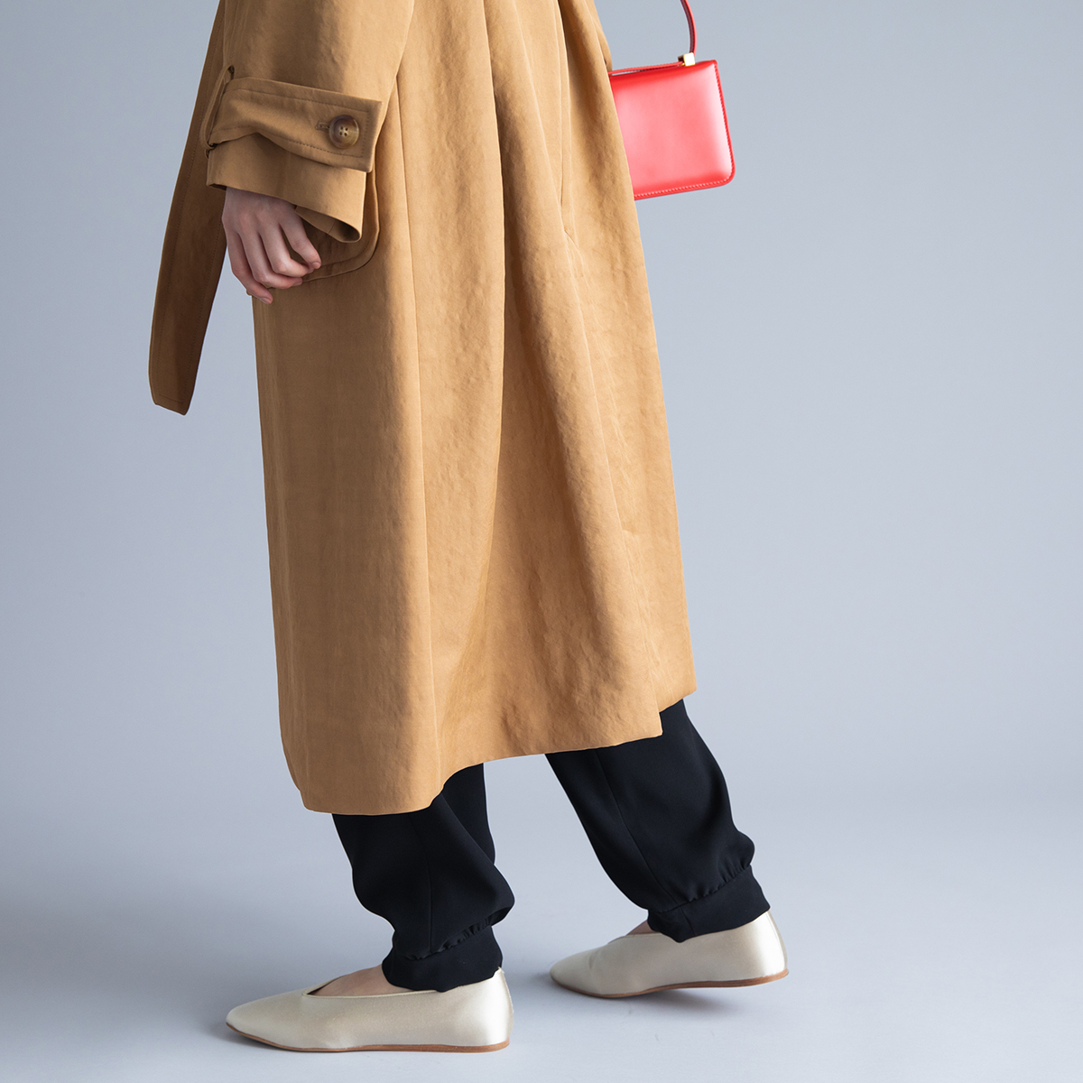 フラットシューズを合わせました。