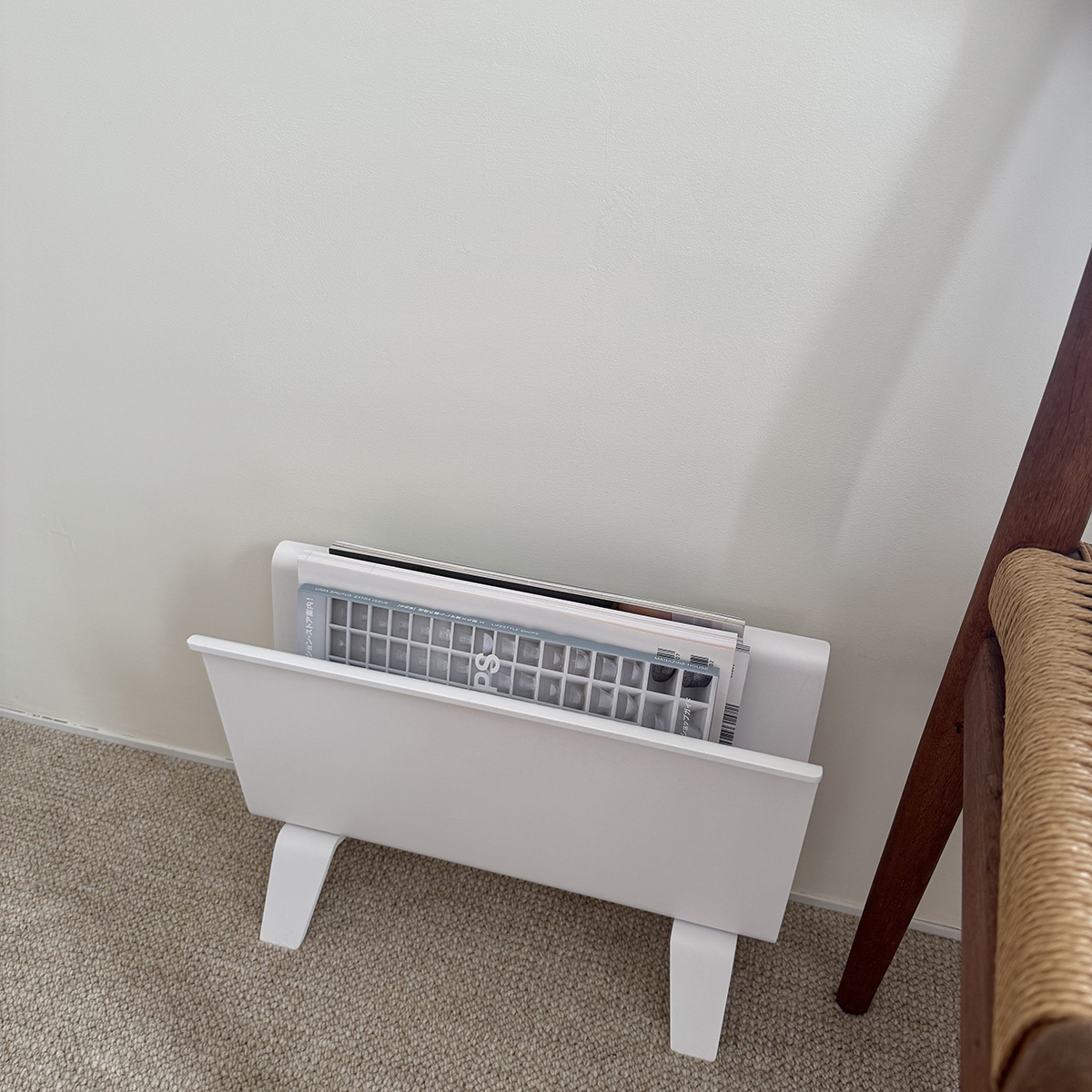 壁と同じホワイトのマガジンラックの中に入れてみたら、