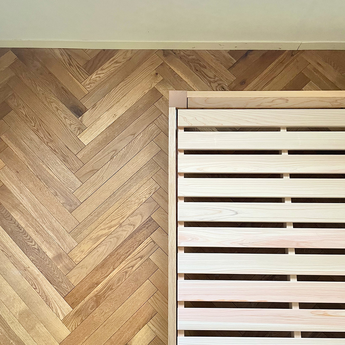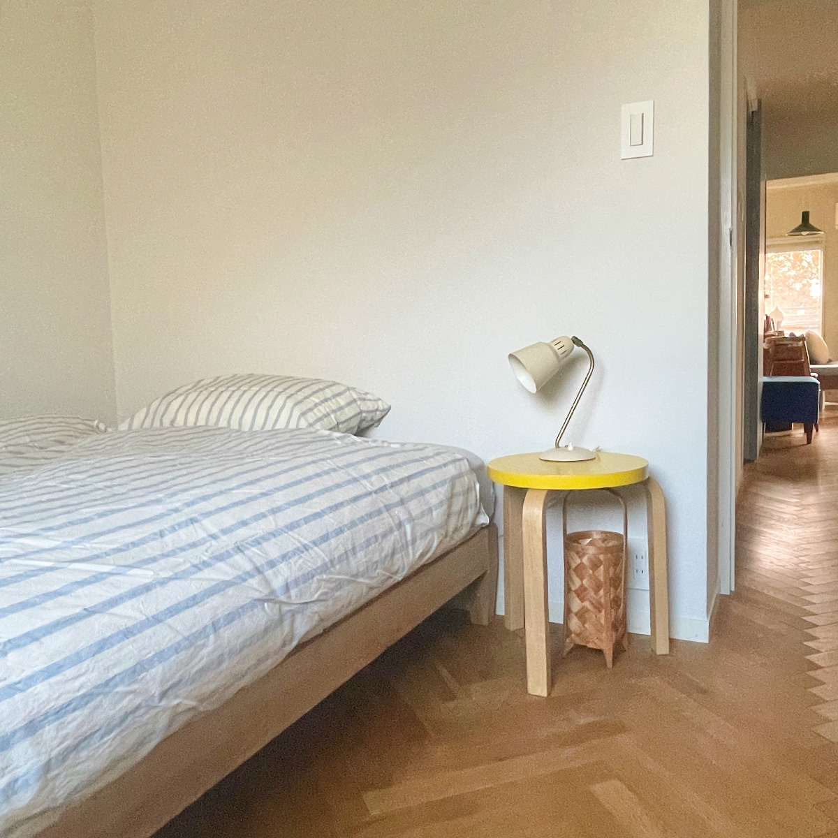 目先を変えて、シンプルな柄や色使いのベッドリネンで