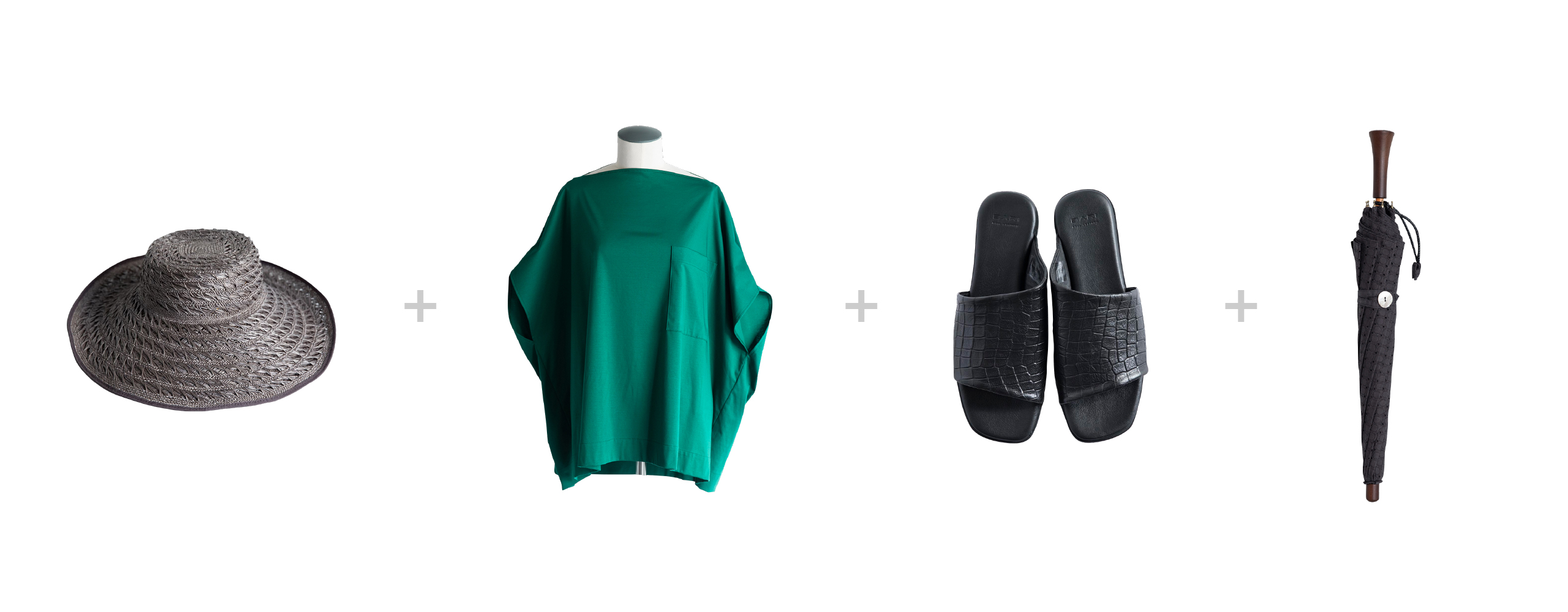 chisakiの帽子とBonBonStoreの日傘。