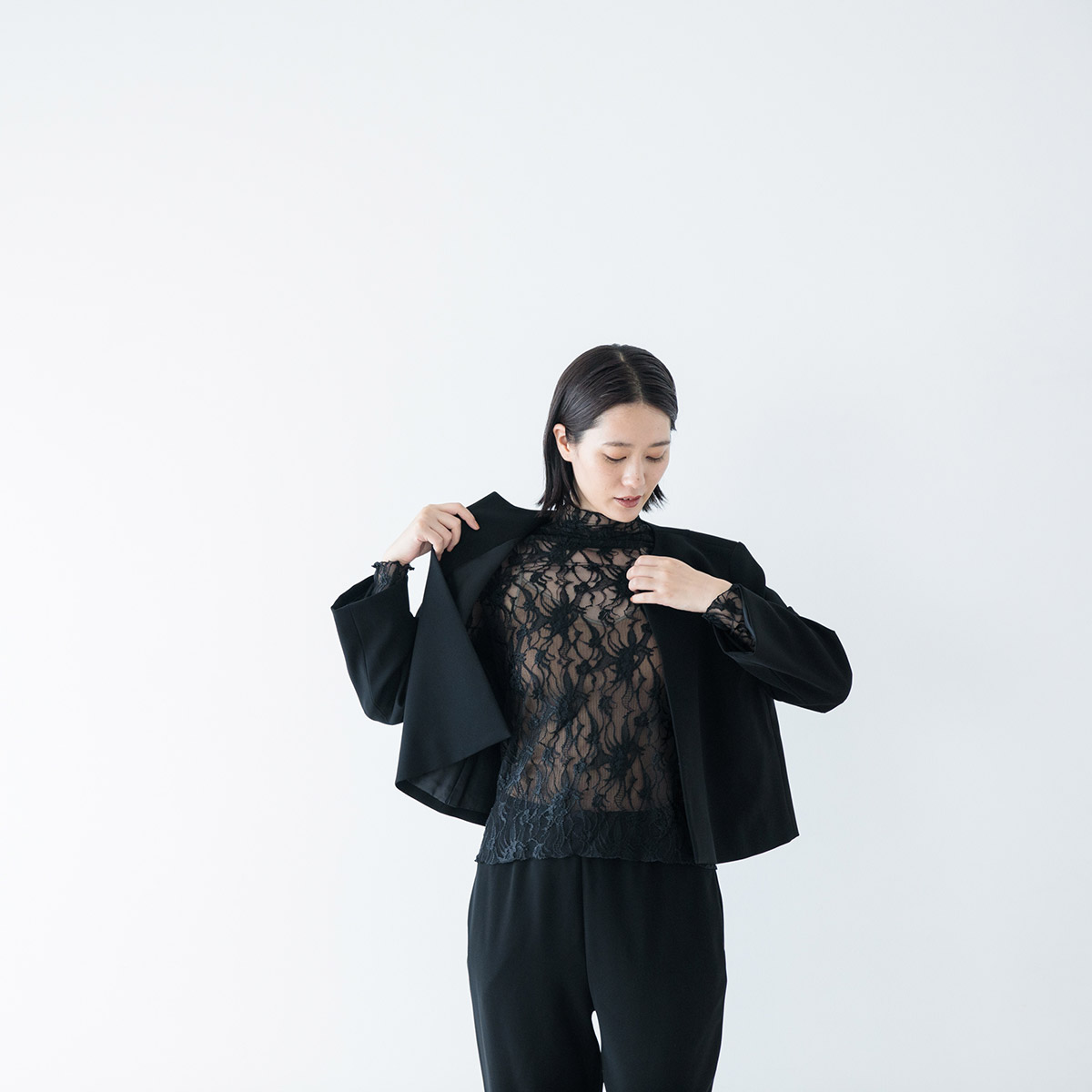 - たしかに、ノーカラー スリットスリーブ ジャケットは