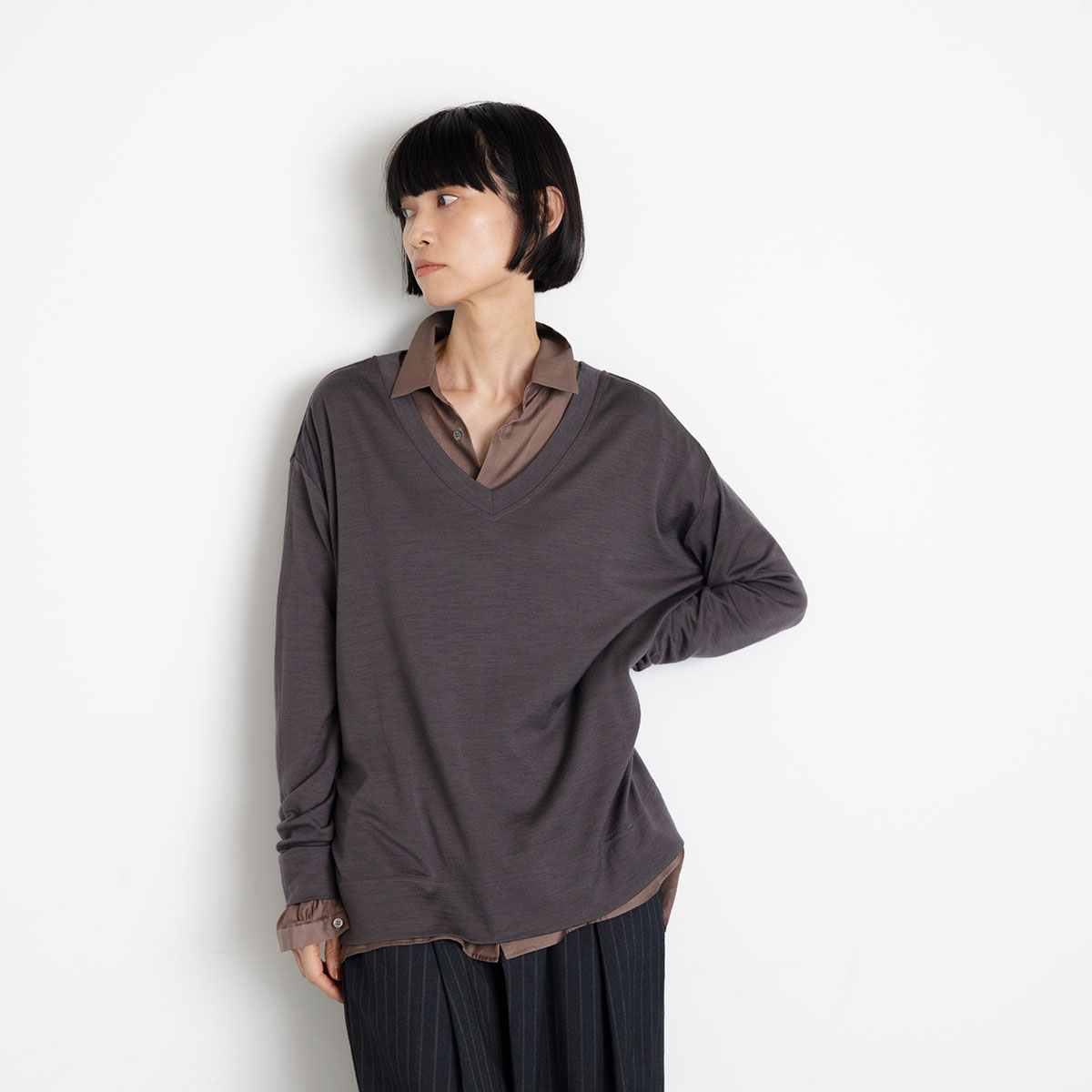 例えばシャツの上にVネックのニットみたいな感覚で