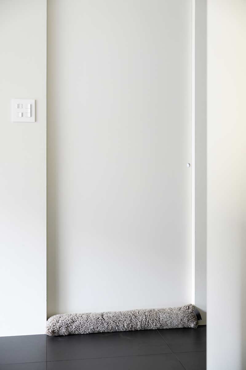 スウィッチは、無駄がなく、見えても美しい、パナソニックのSO-STYLEを採用。下のモフモフは、ドアの隙間からの冷気を防ぐドアクッション。