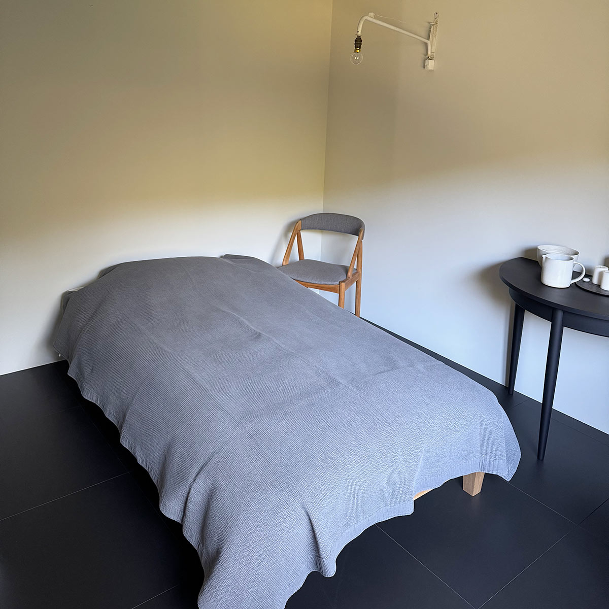 床が黒いタイルなので、