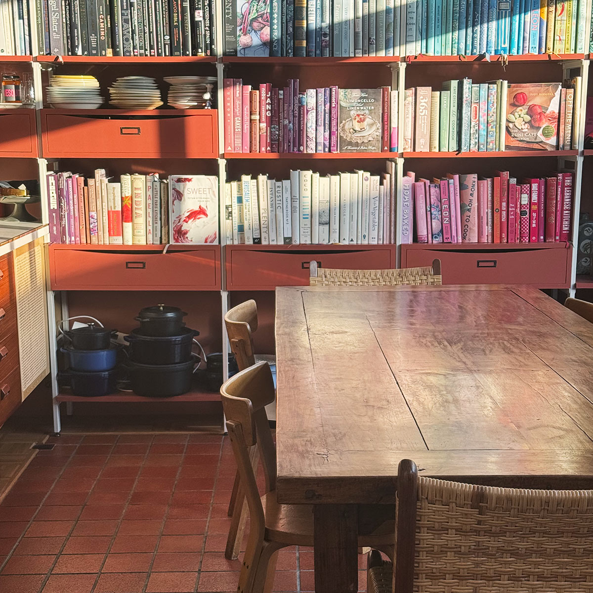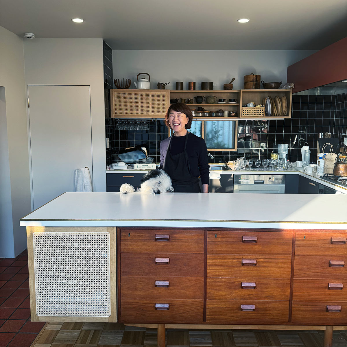 棚板や引き出しもテラコッタ色にしたのだとか。