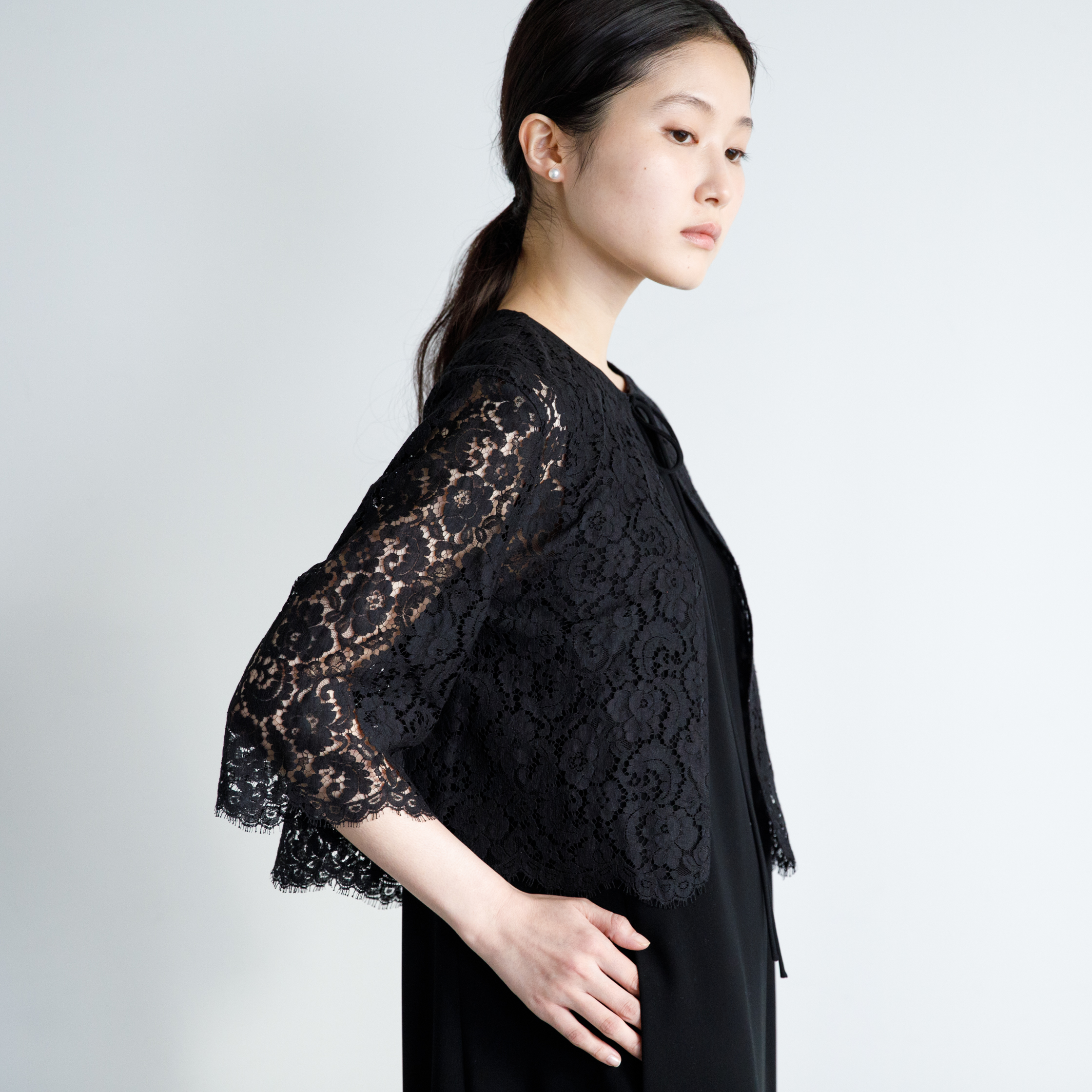 ノースリーブワンピースとレースブラウス。