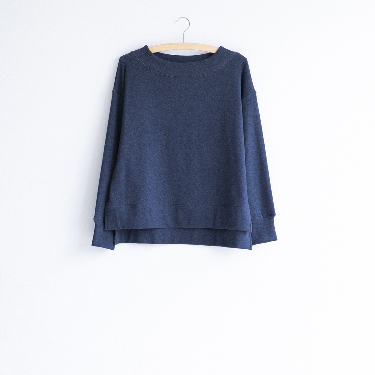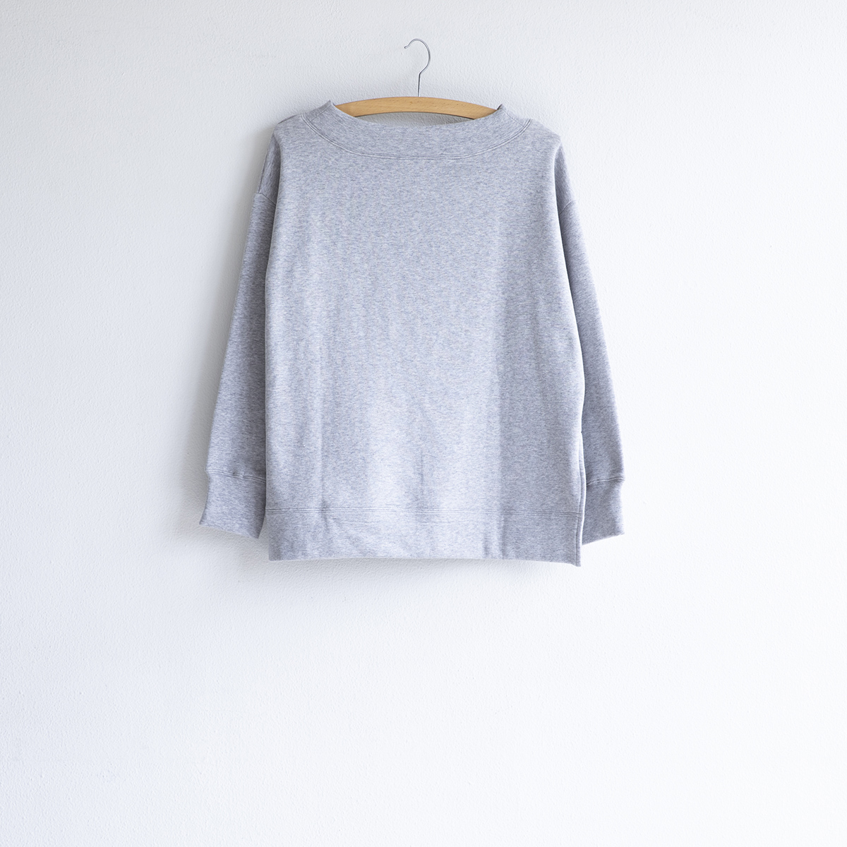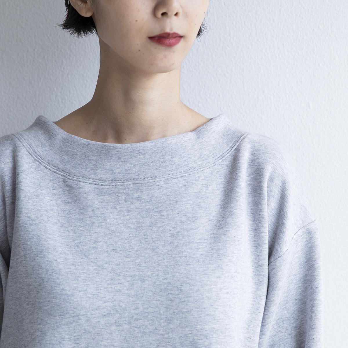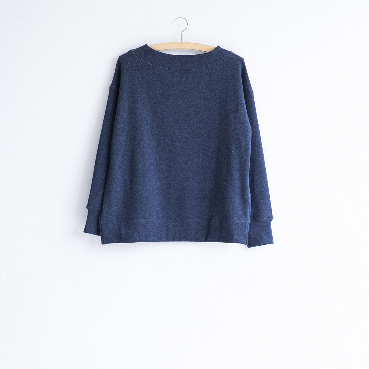 ボートネック風のやや広めなネックデザインです。