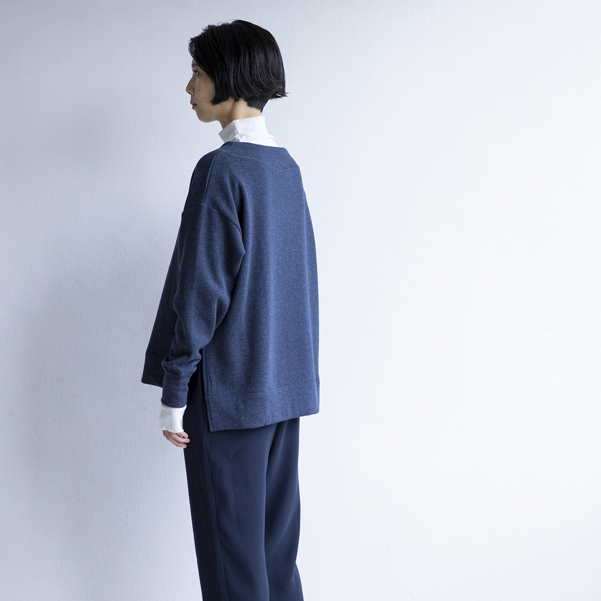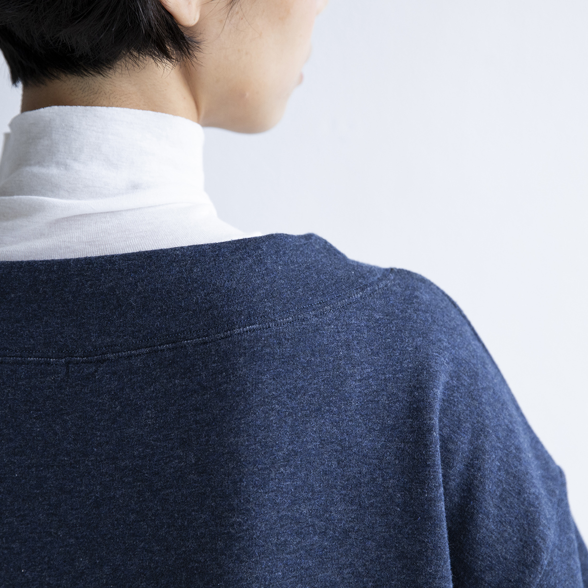 襟ぐりの微妙な開き具合。