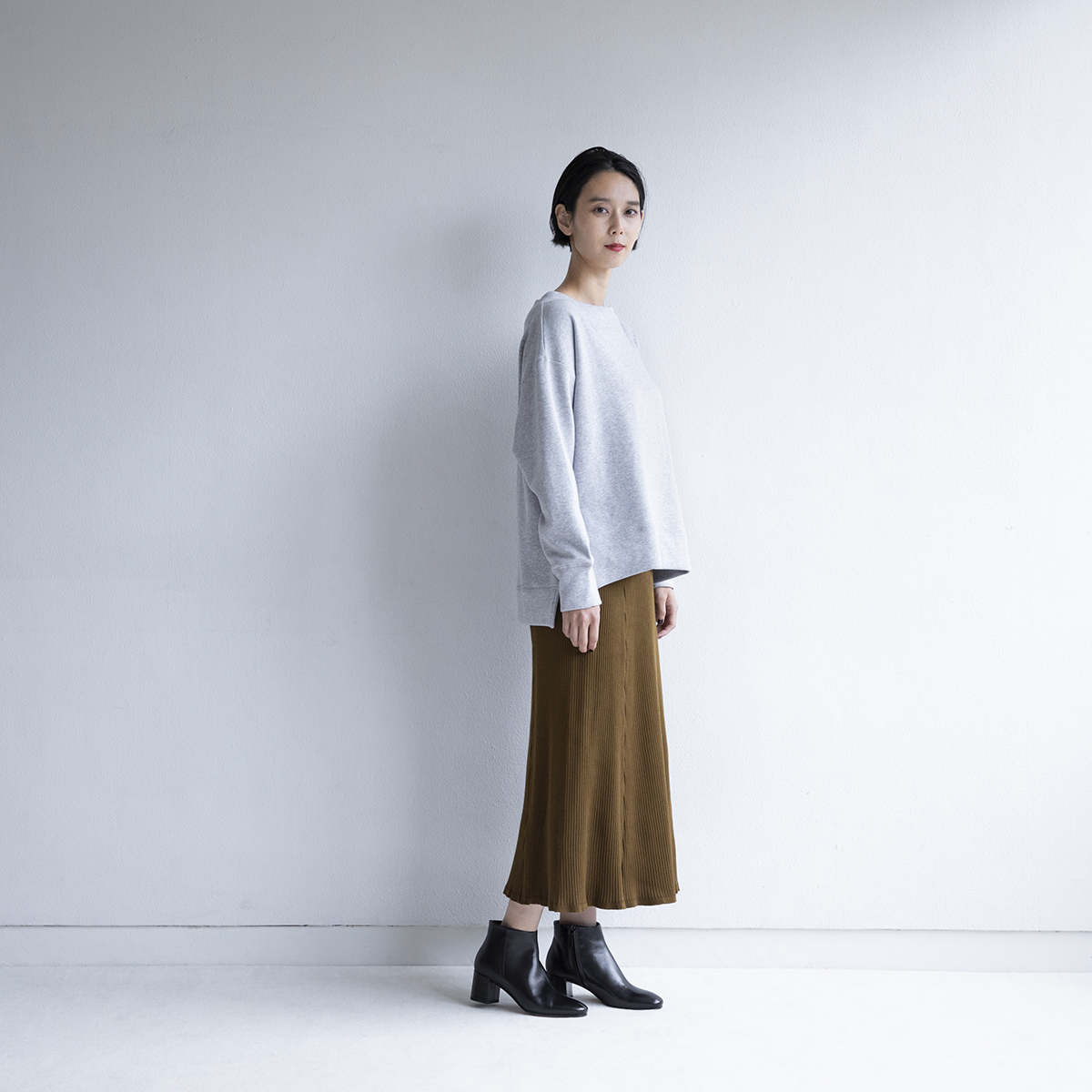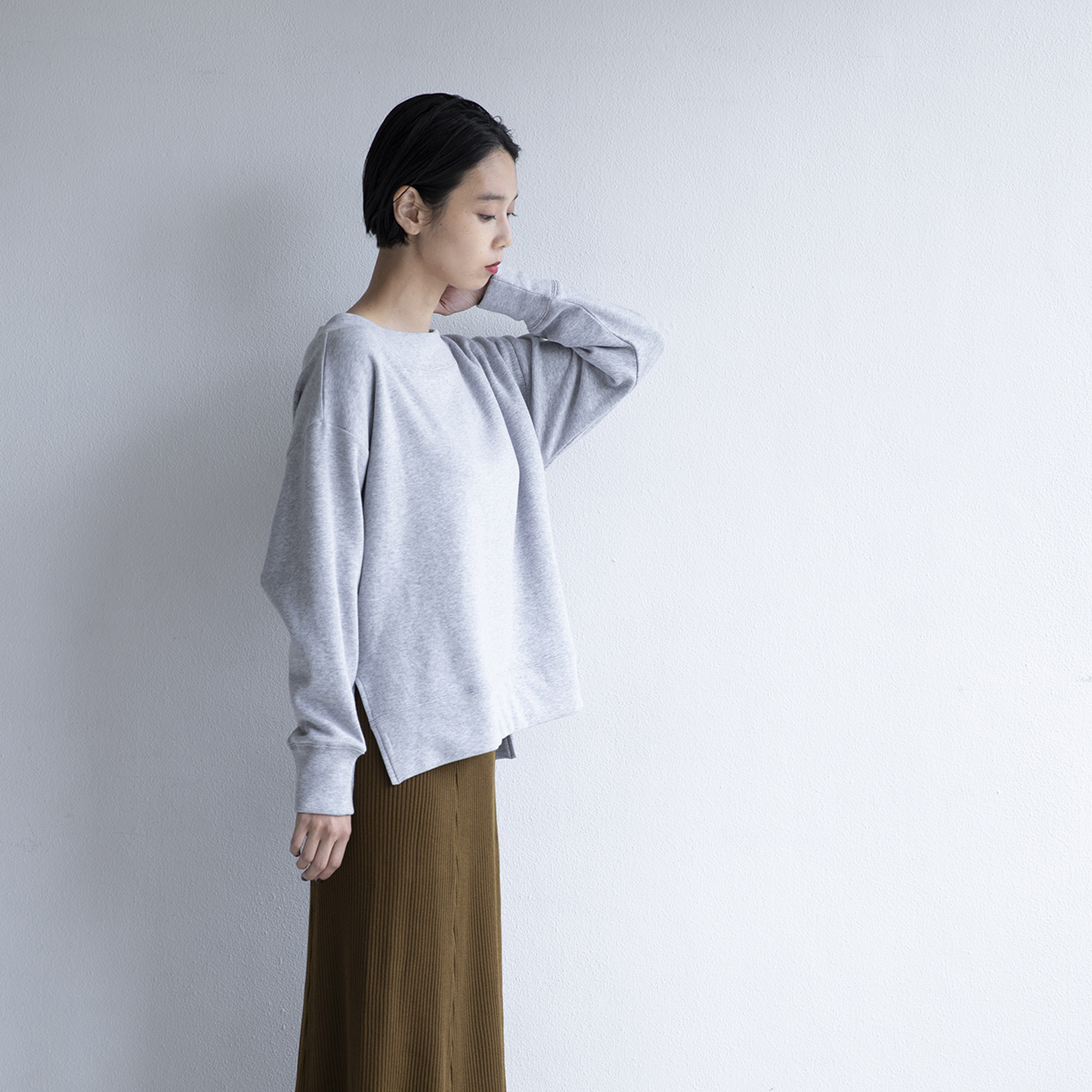 スウェット素材ですがスポーティではなく、