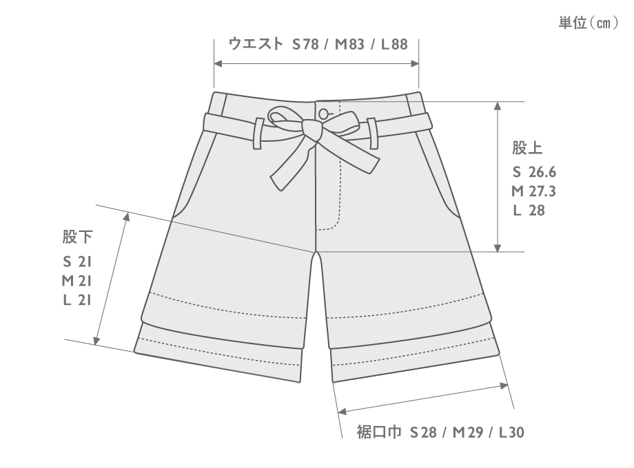 | ウエスト | 股上 | 股下 | 裾口巾 | |