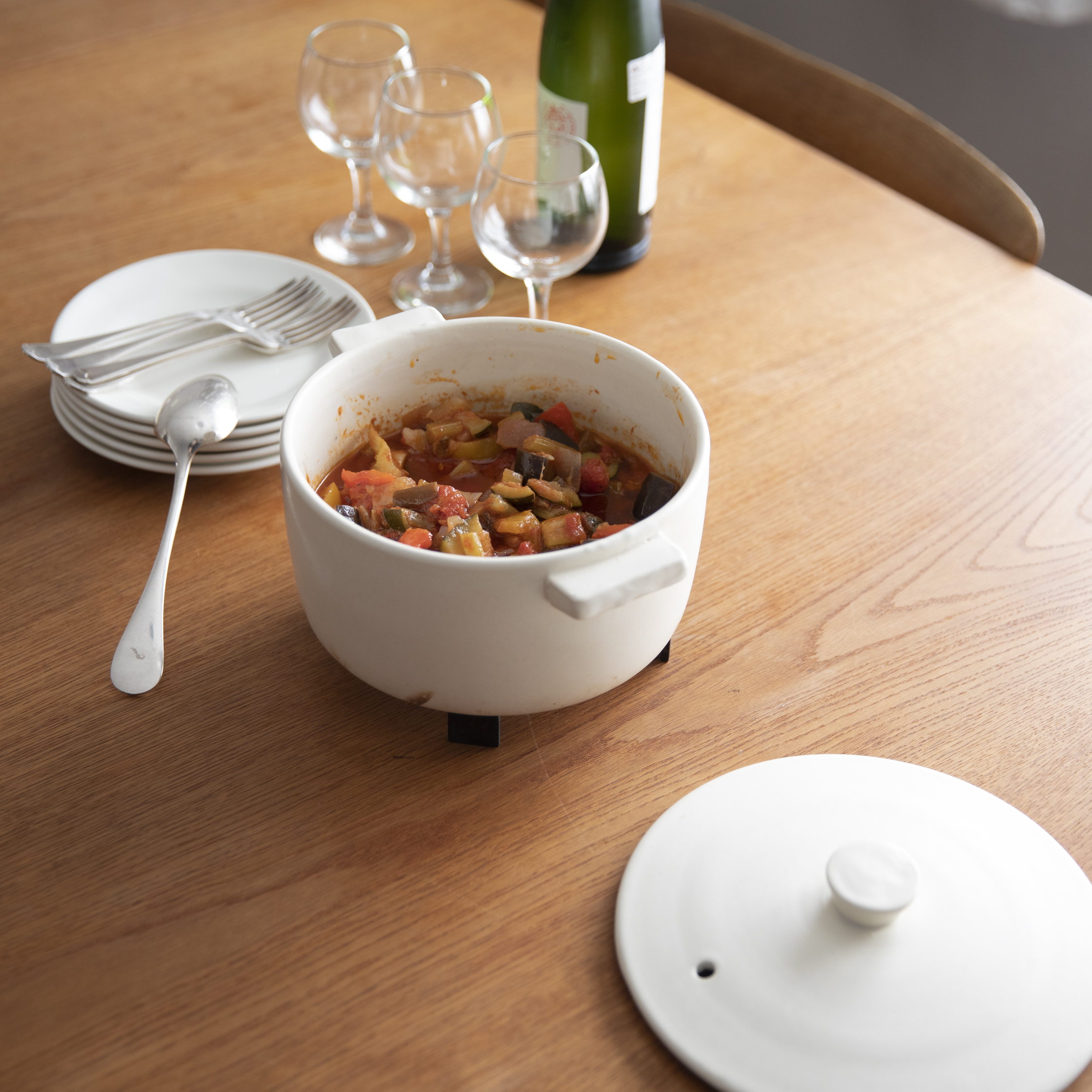 ・加熱したキャセロールに触れるときには、火傷をしないように注意し、必ず鍋つかみ等を使用してください。