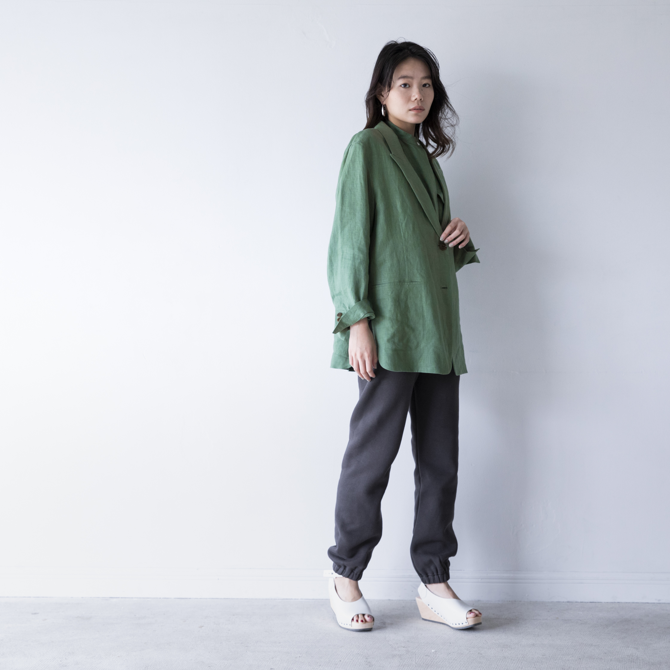 ルーズすぎない品のあるシルエットでまとめた、